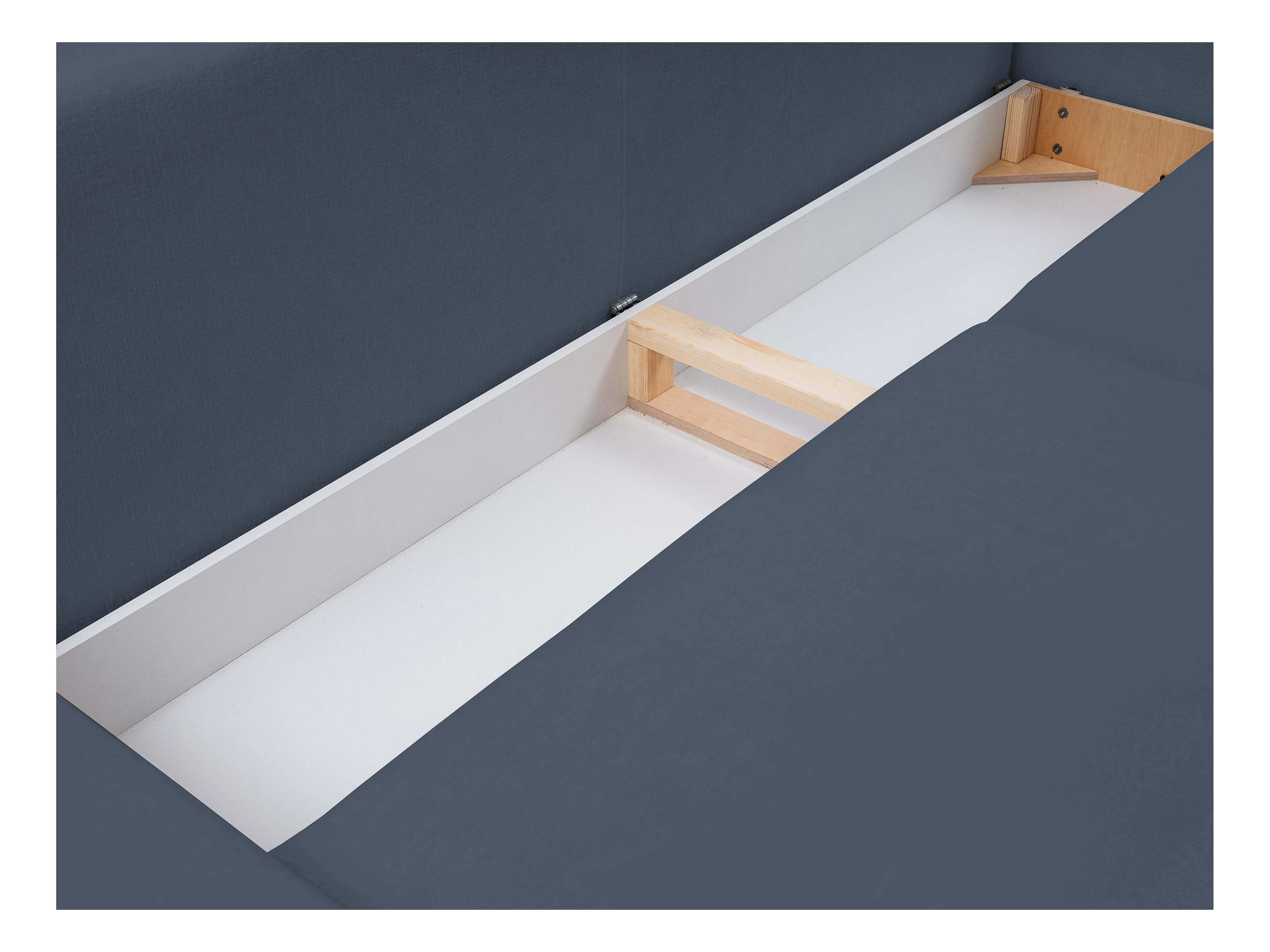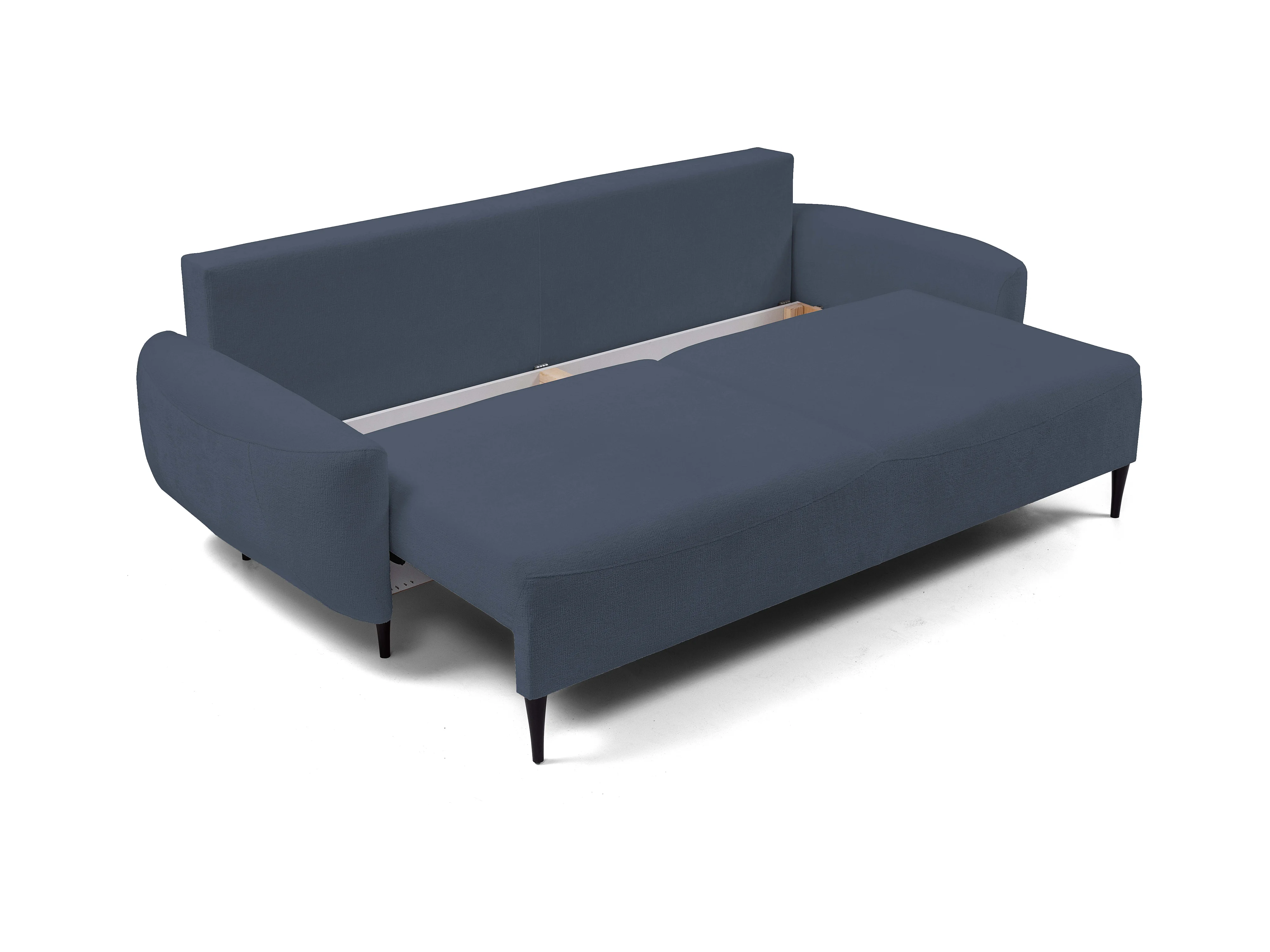 BOHO Sofa - Uitschuifbare bank met slaapoppervlak 140x200 cm, houten poten, opbergruimte, PUR-stof, 244x92x102 cm LICHTBLAUW