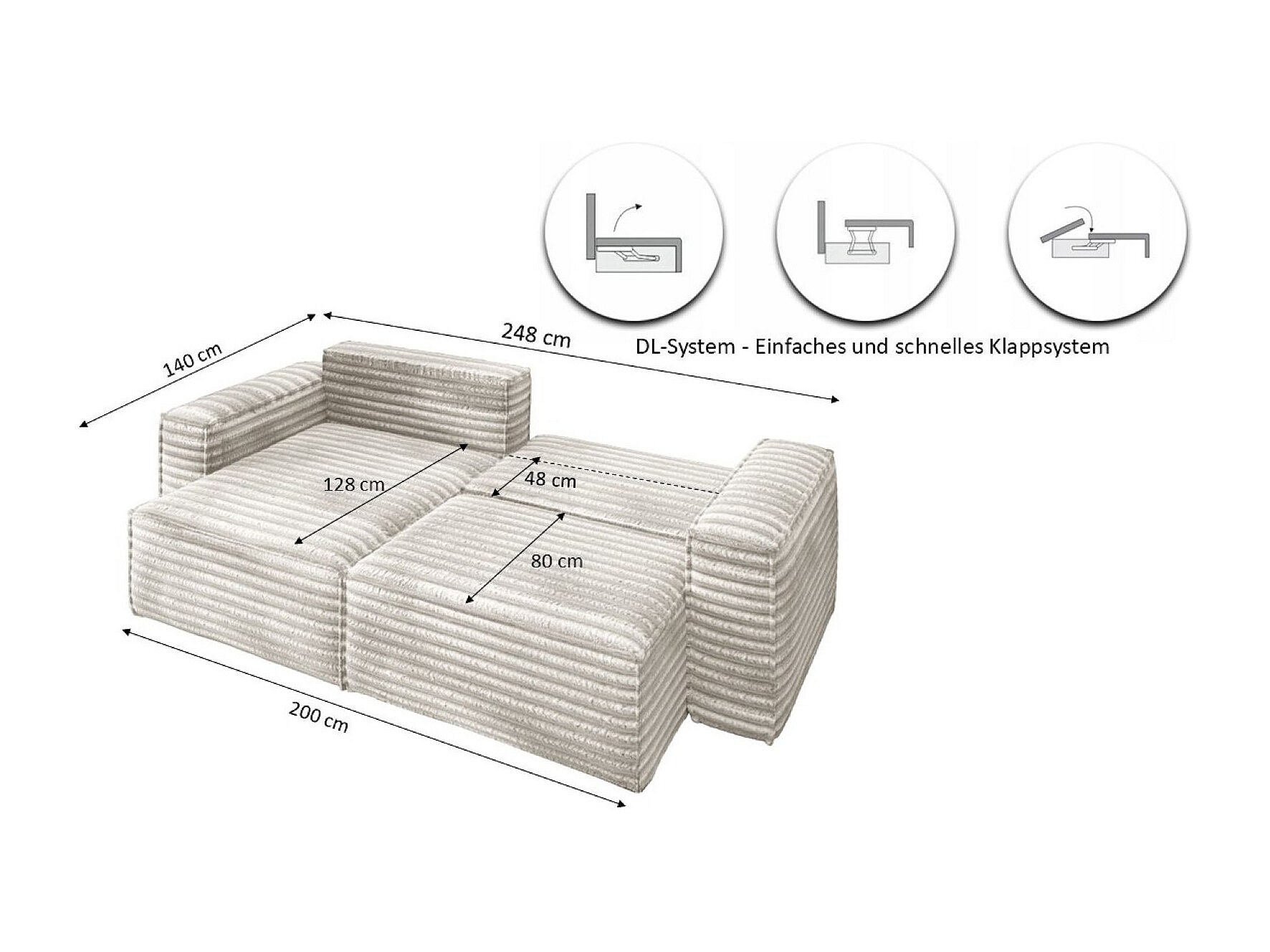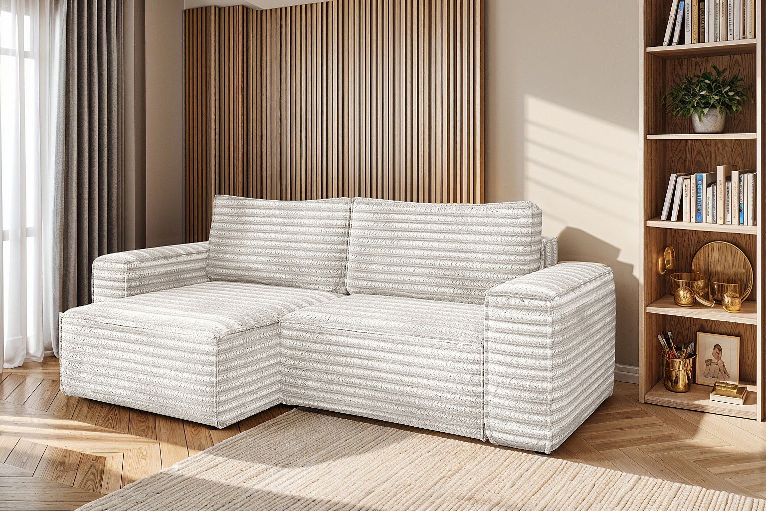 Bohoo L-vormige hoekbank met slaapbank, Velo stof, ecru, links