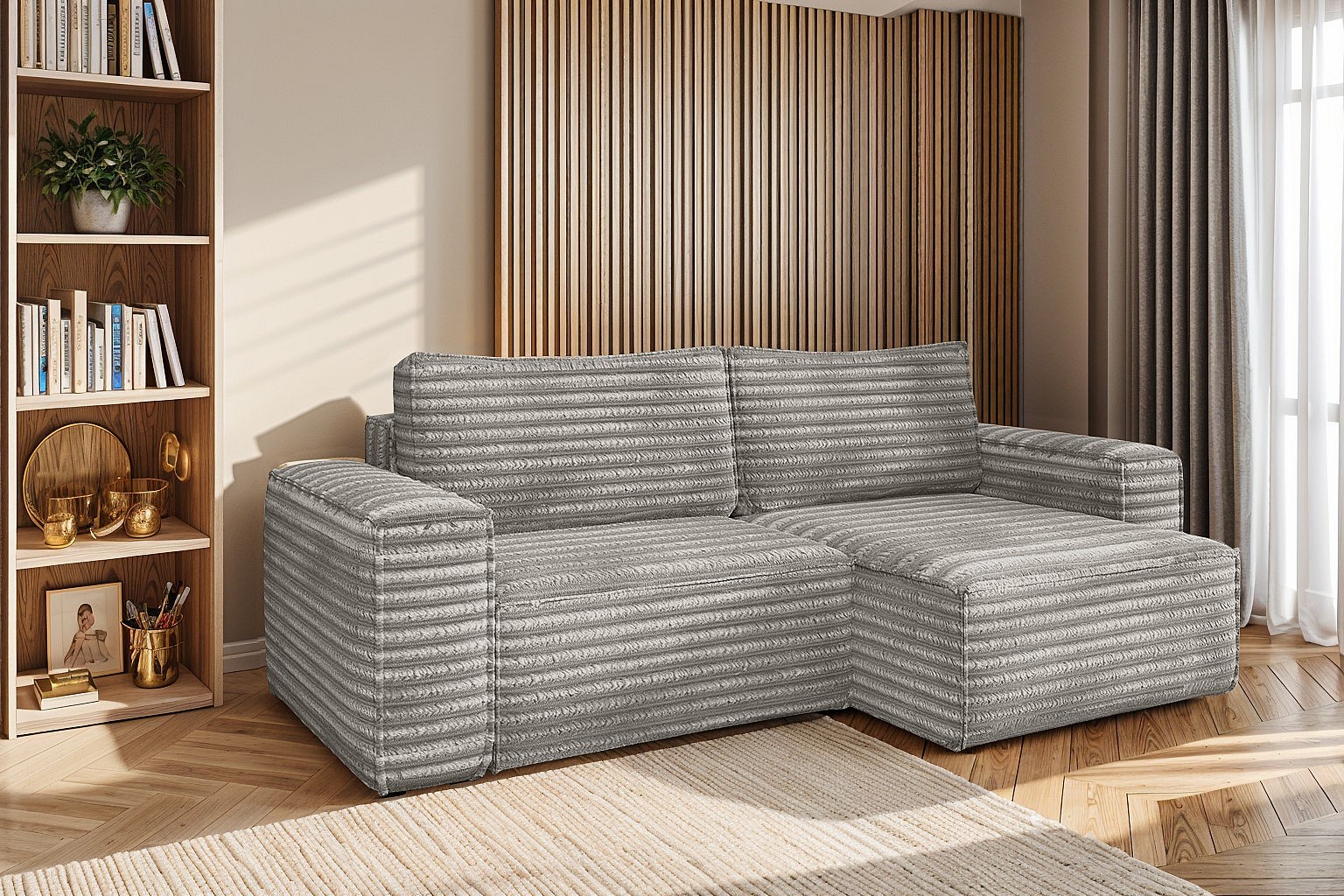 Bohoo L-vormige hoekbank met slaapbank, Velo stof, grijs, rechts