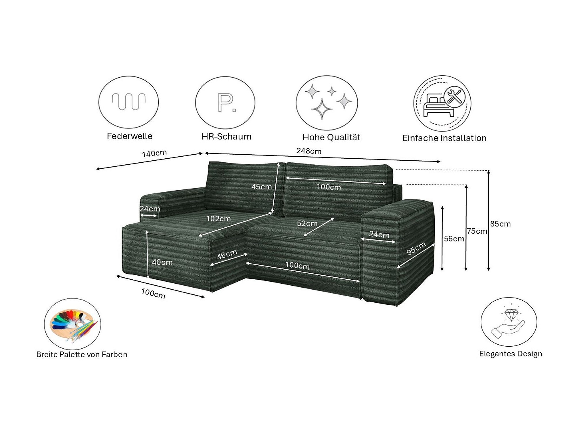 Bohoo L-vormige hoekbank met slaapbank, Velo stof, groen, rechts