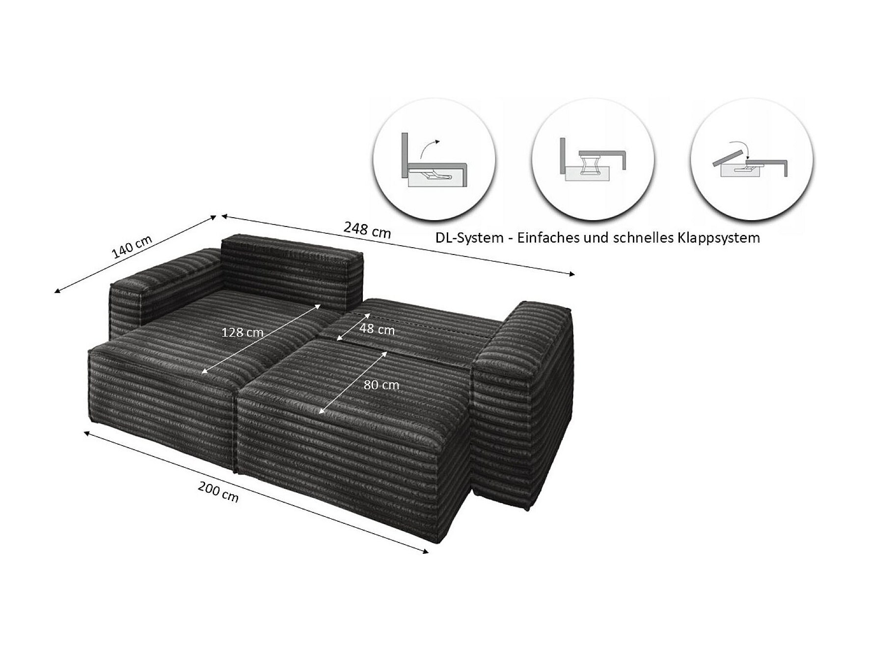 Bohoo L-vormige hoekbank met slaapfunctie, Velo stof, donkergrijs, links