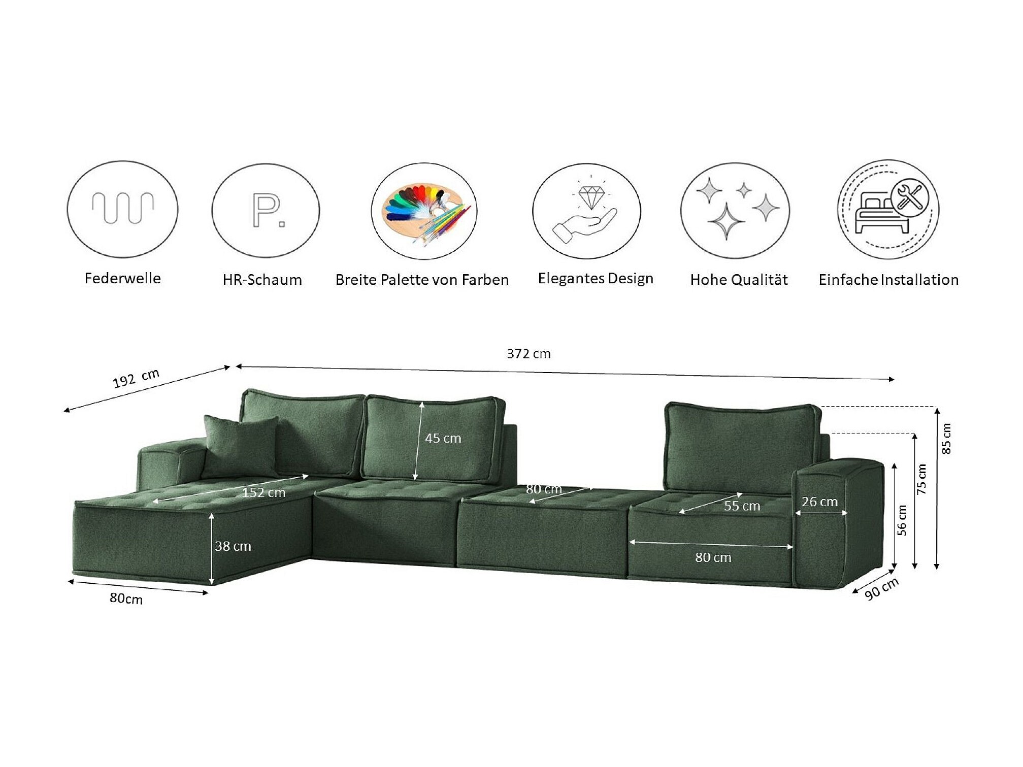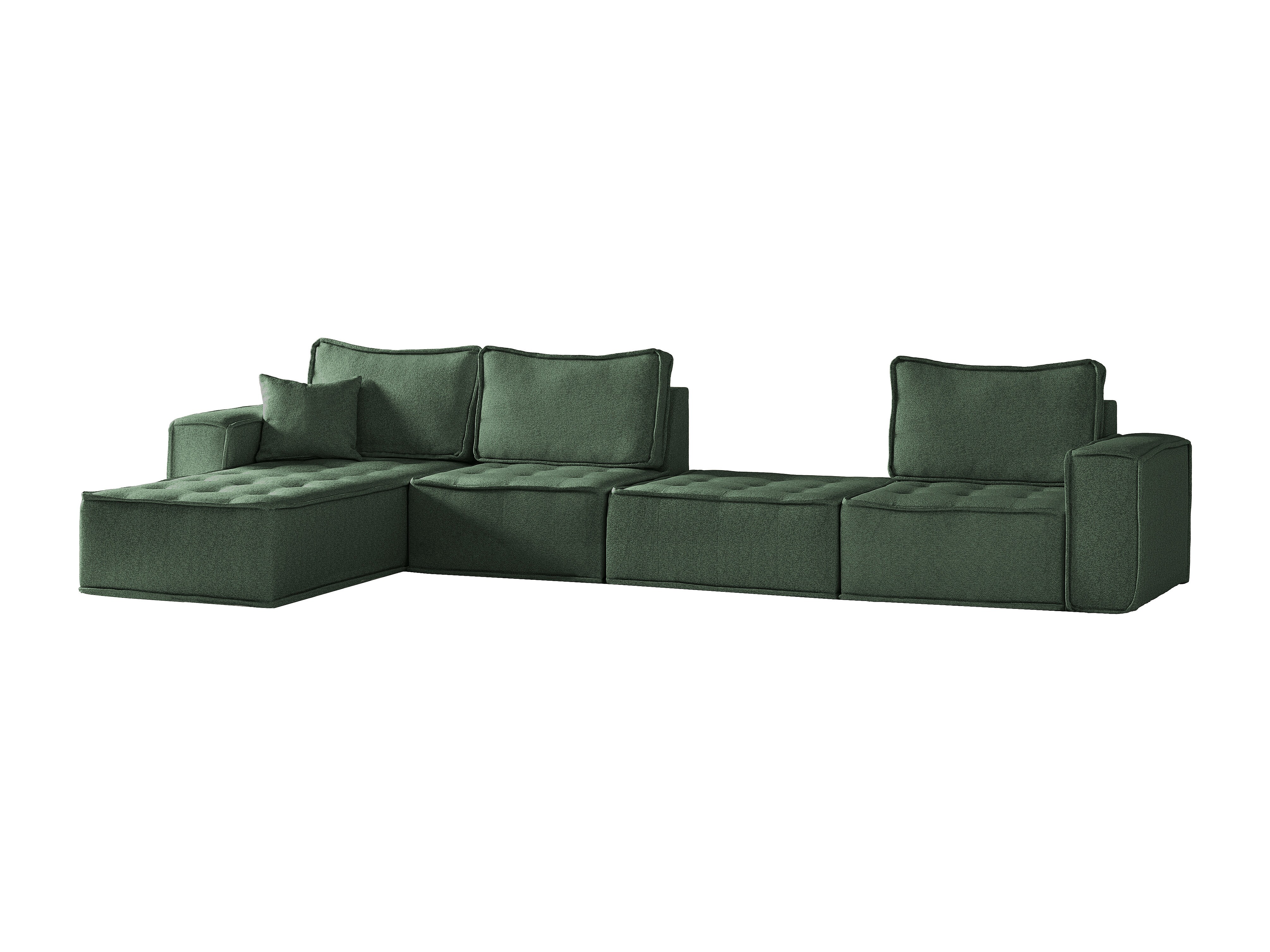 Bohoo XL L-vormige hoekbank, Raven stof, lichtgroen, links