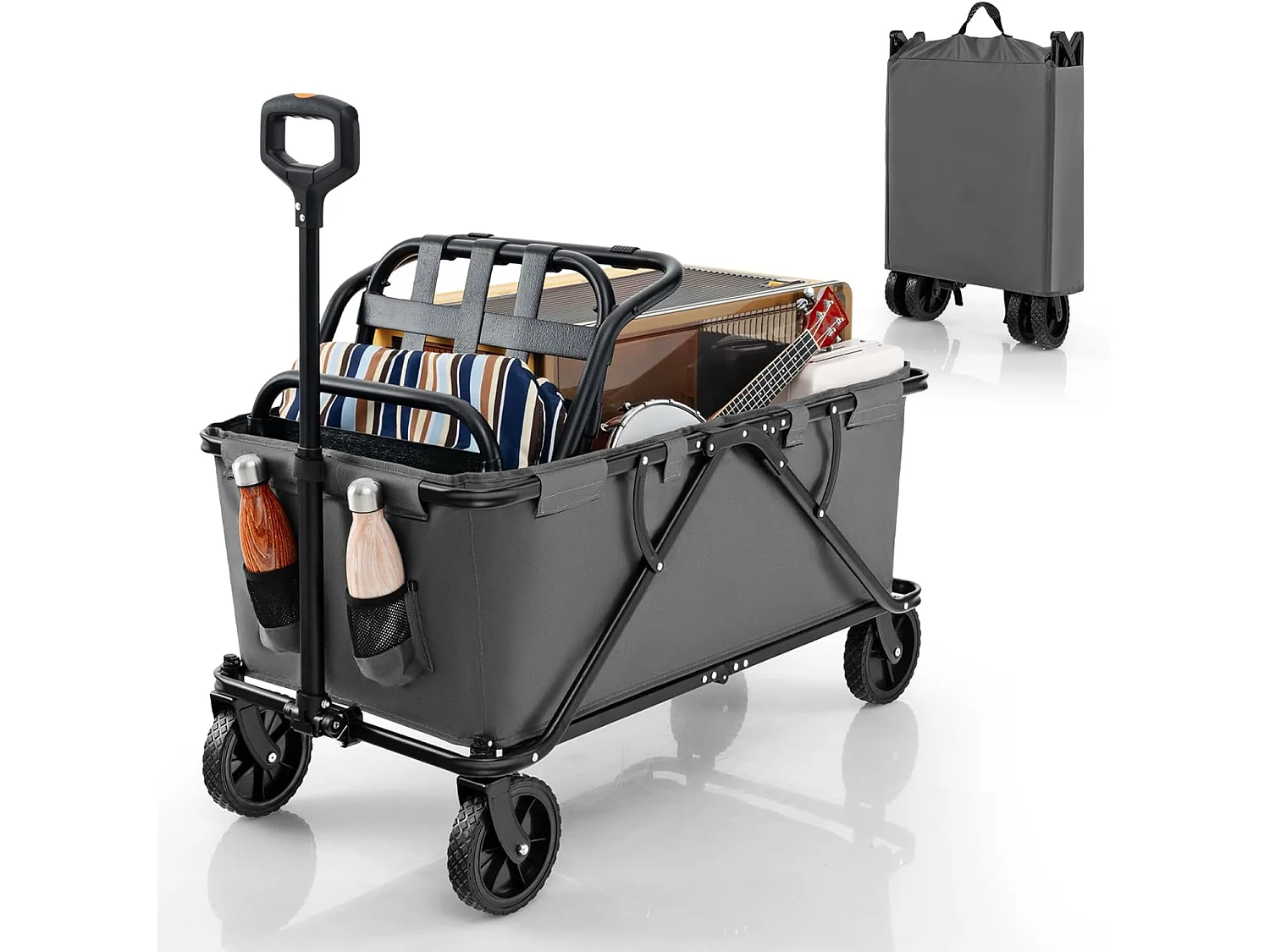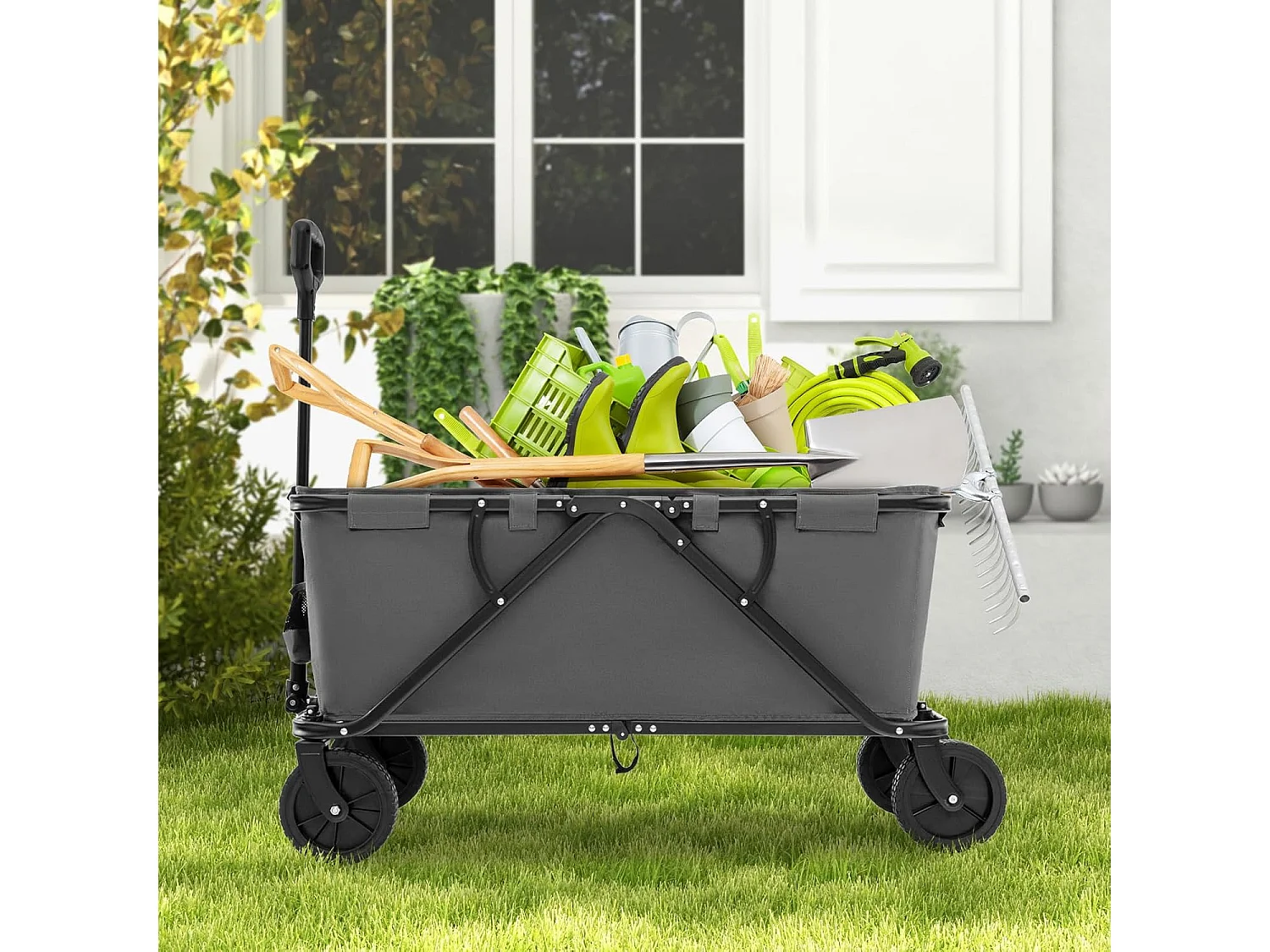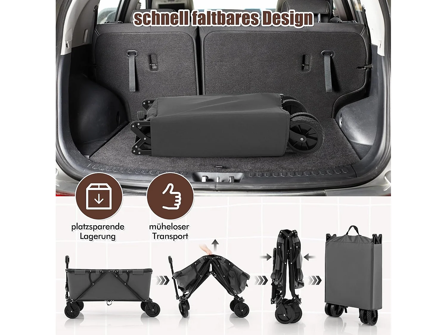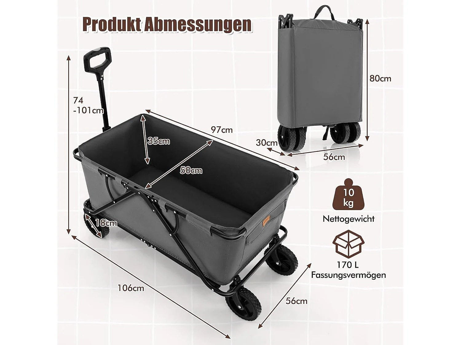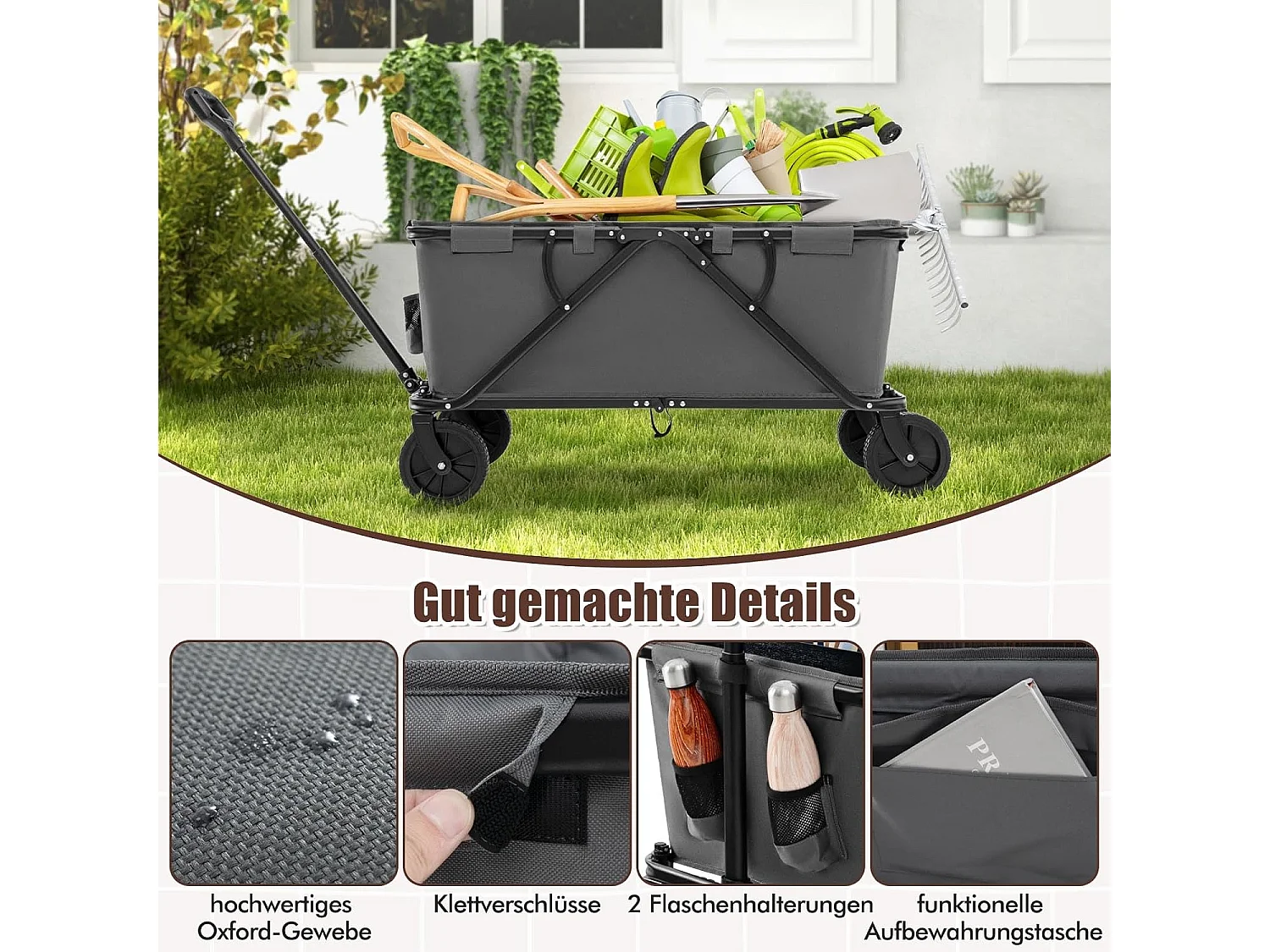 Bolderkar, opvouwbaar, handwagen met verstelbare handgreep, bekerhouders en opbergtas,tuinwagen tot 100 kg belastbaar,transportwagen voor winkelen,kamperen,ZB33965