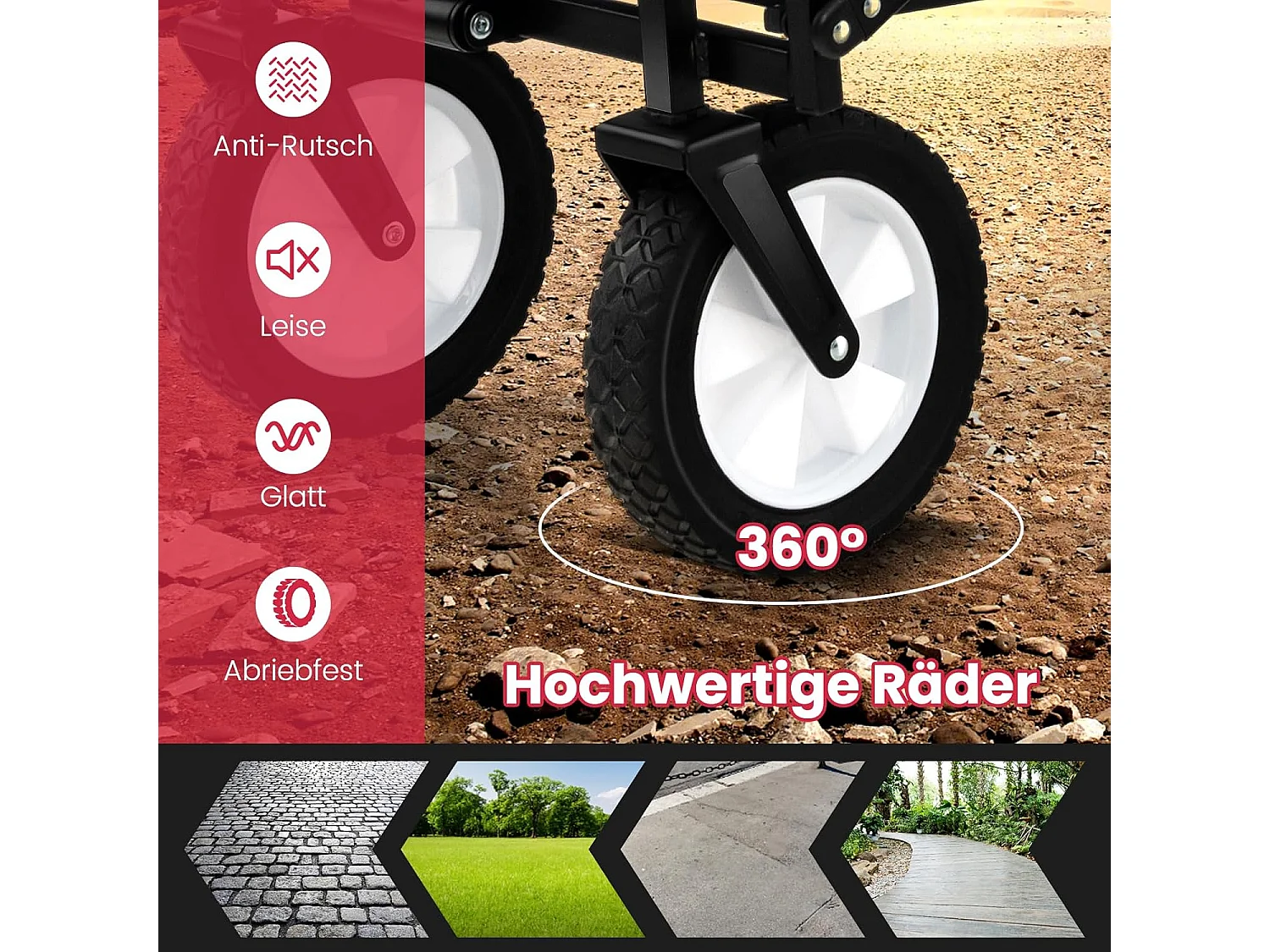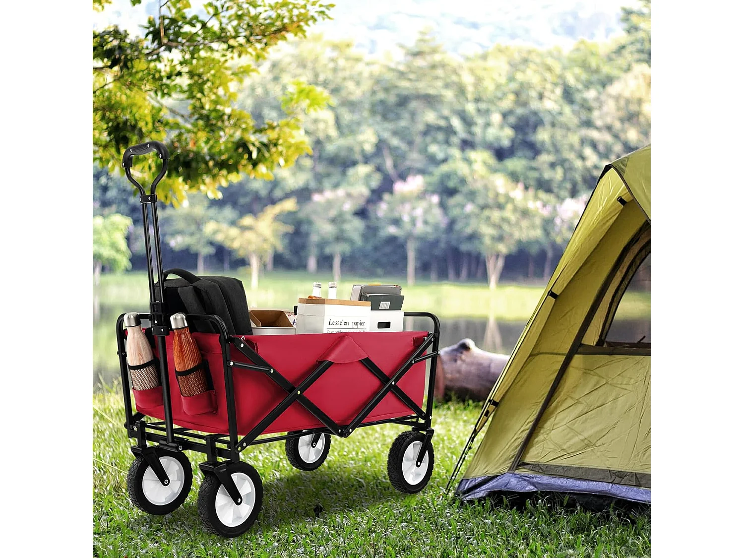 Bolderkar, opvouwbaar, handwagen met verstelbare handgreep en bekerhouders, tuinwagen, belastbaar tot 68 kg, transportwagen voor winkelen, kamperen, roodZB33724