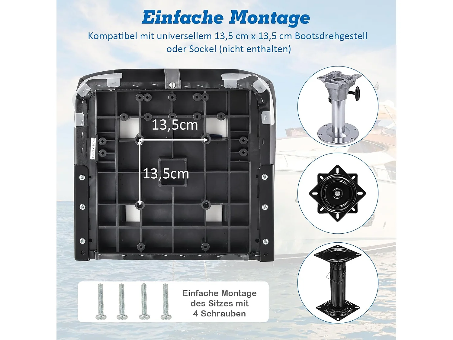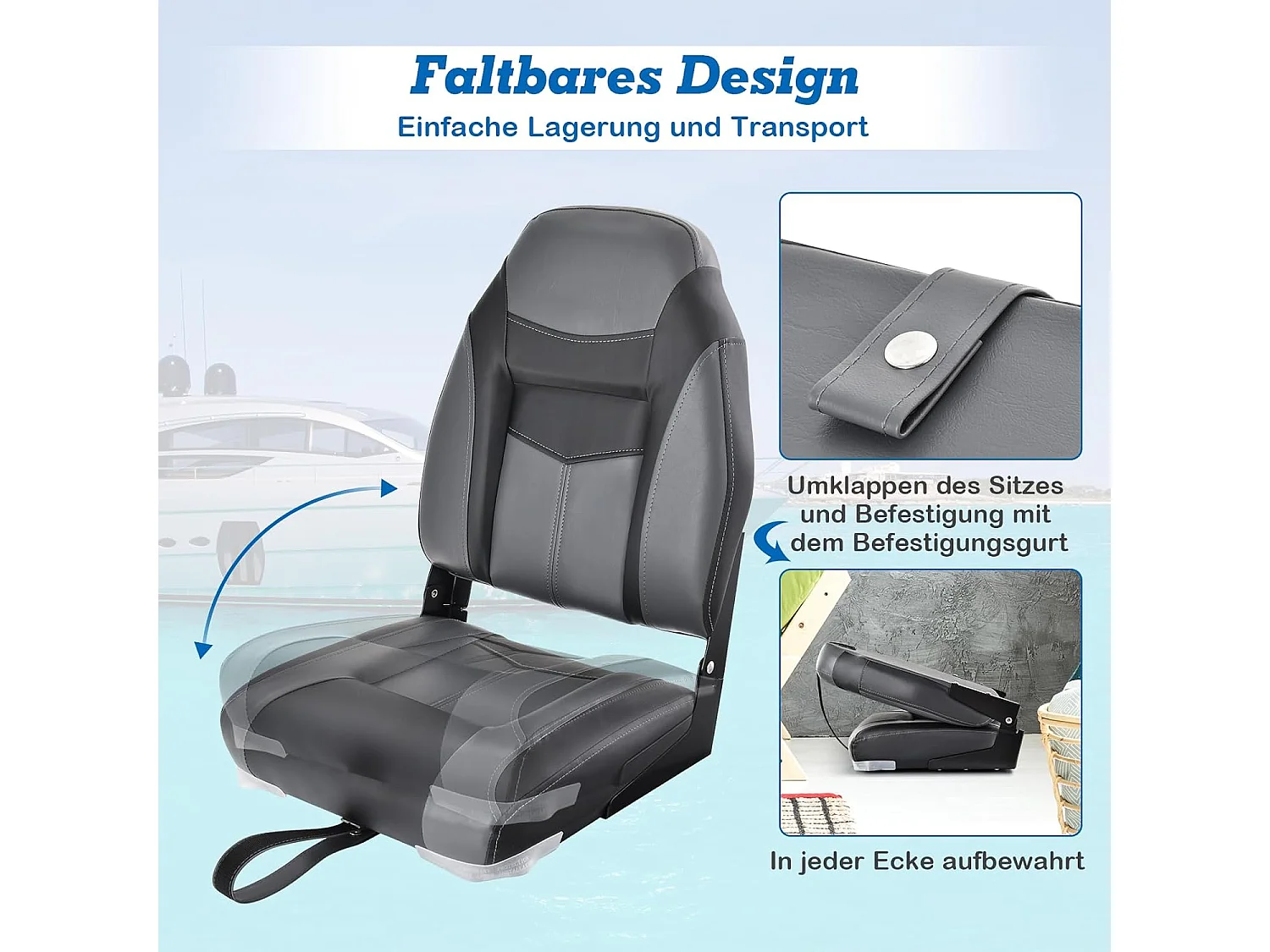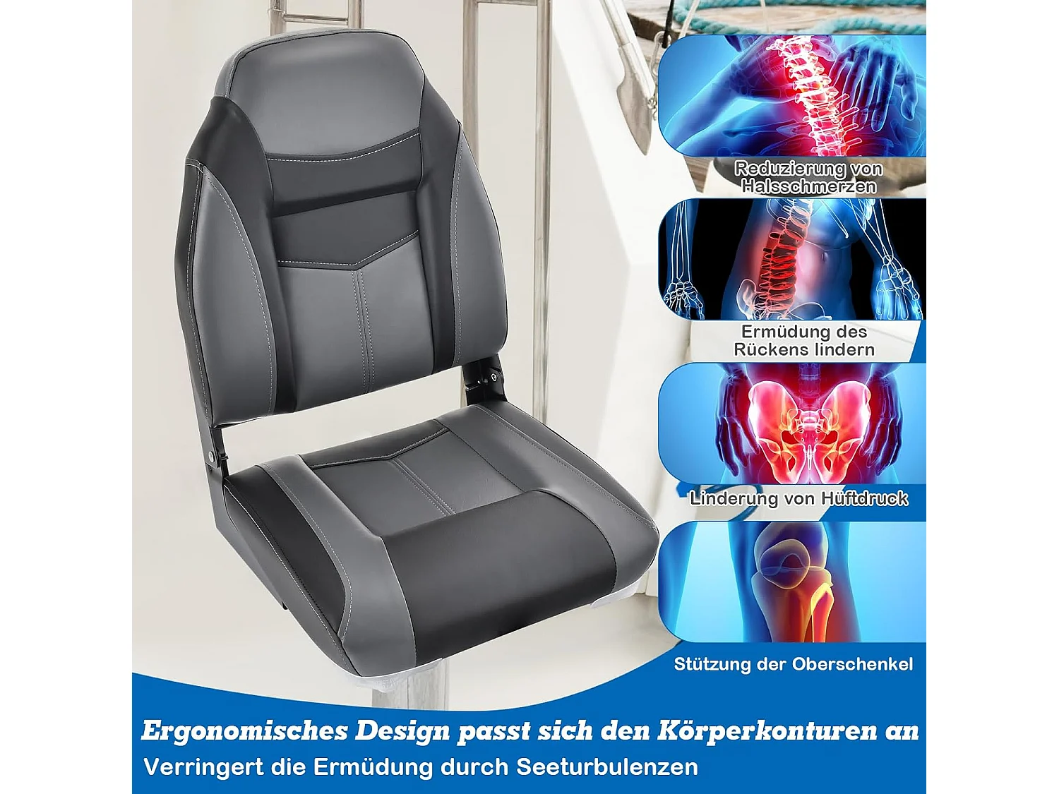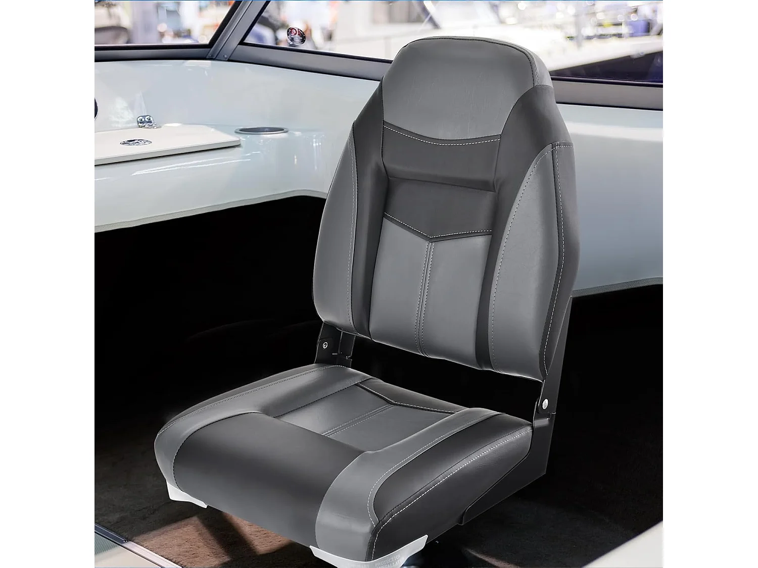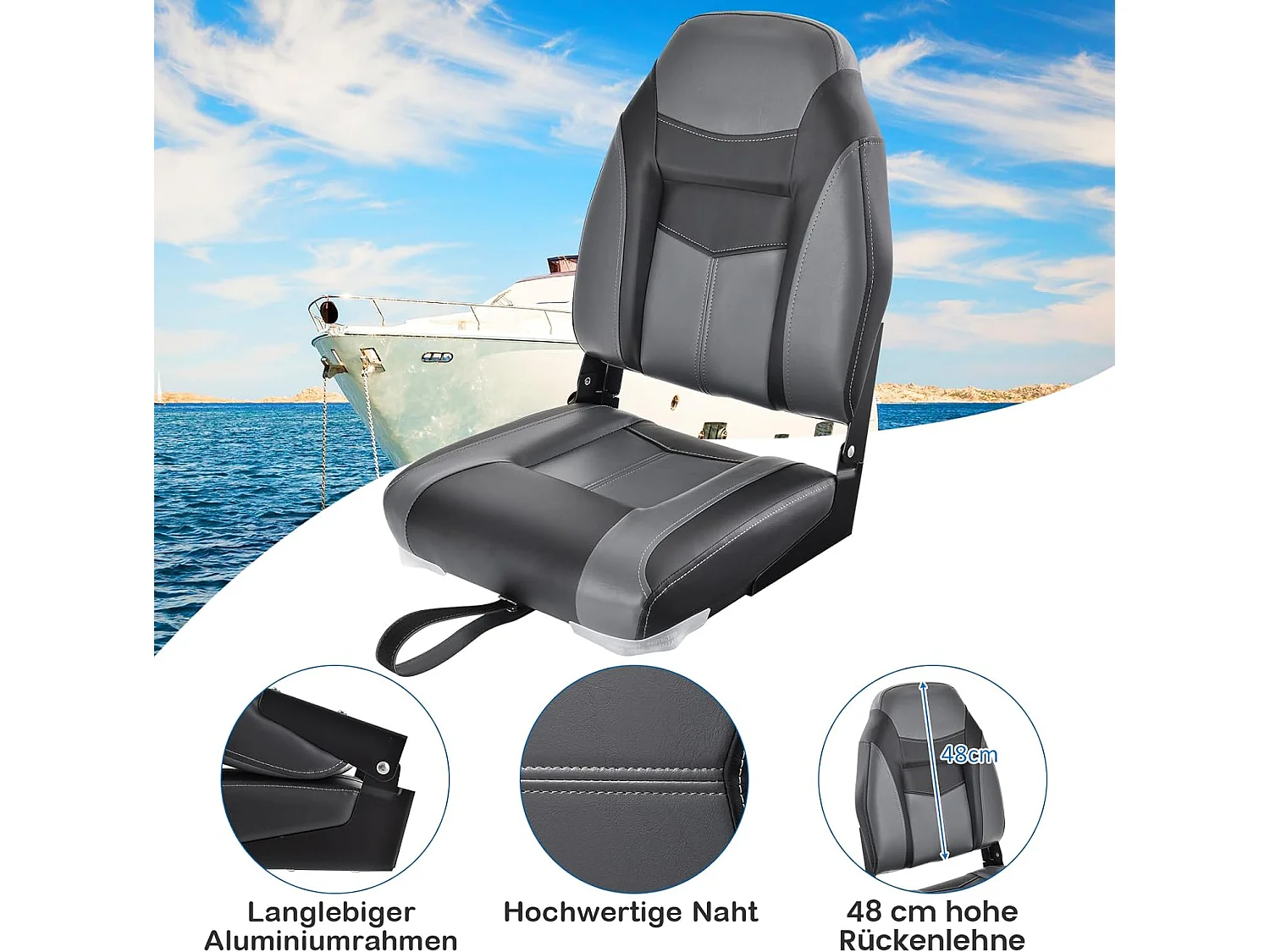 Bootstoel met hoge rugleuning, inklapbare bootstoel met 10 cm dikke sponsvulling, gevoerde stuurstoel voor boten (zwart, enkel)ZB32744
