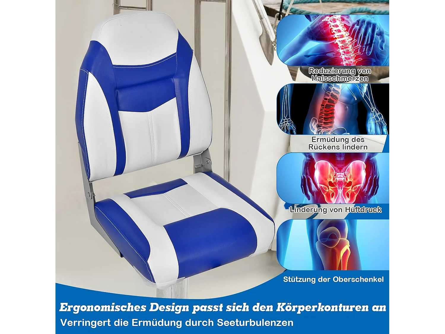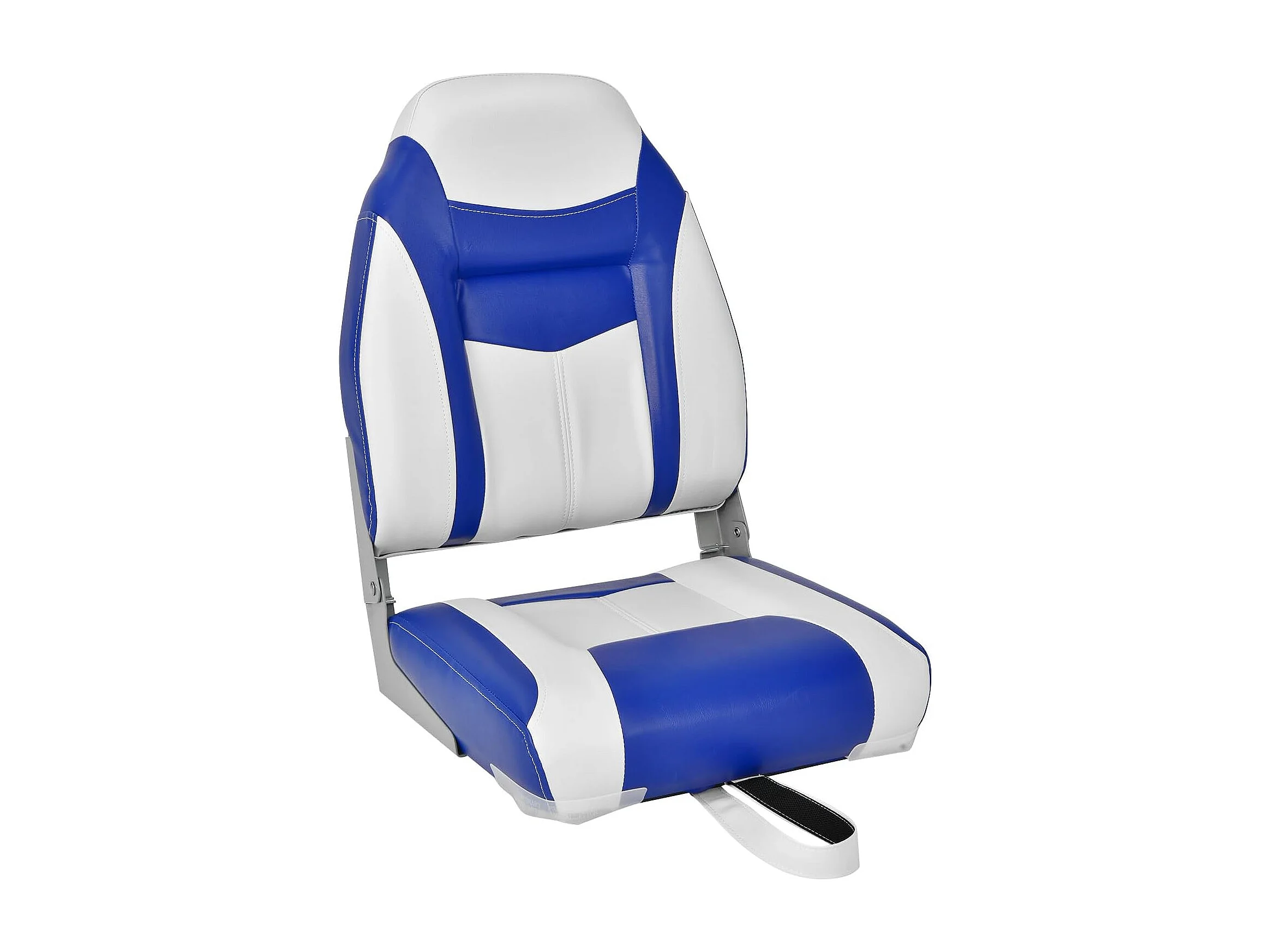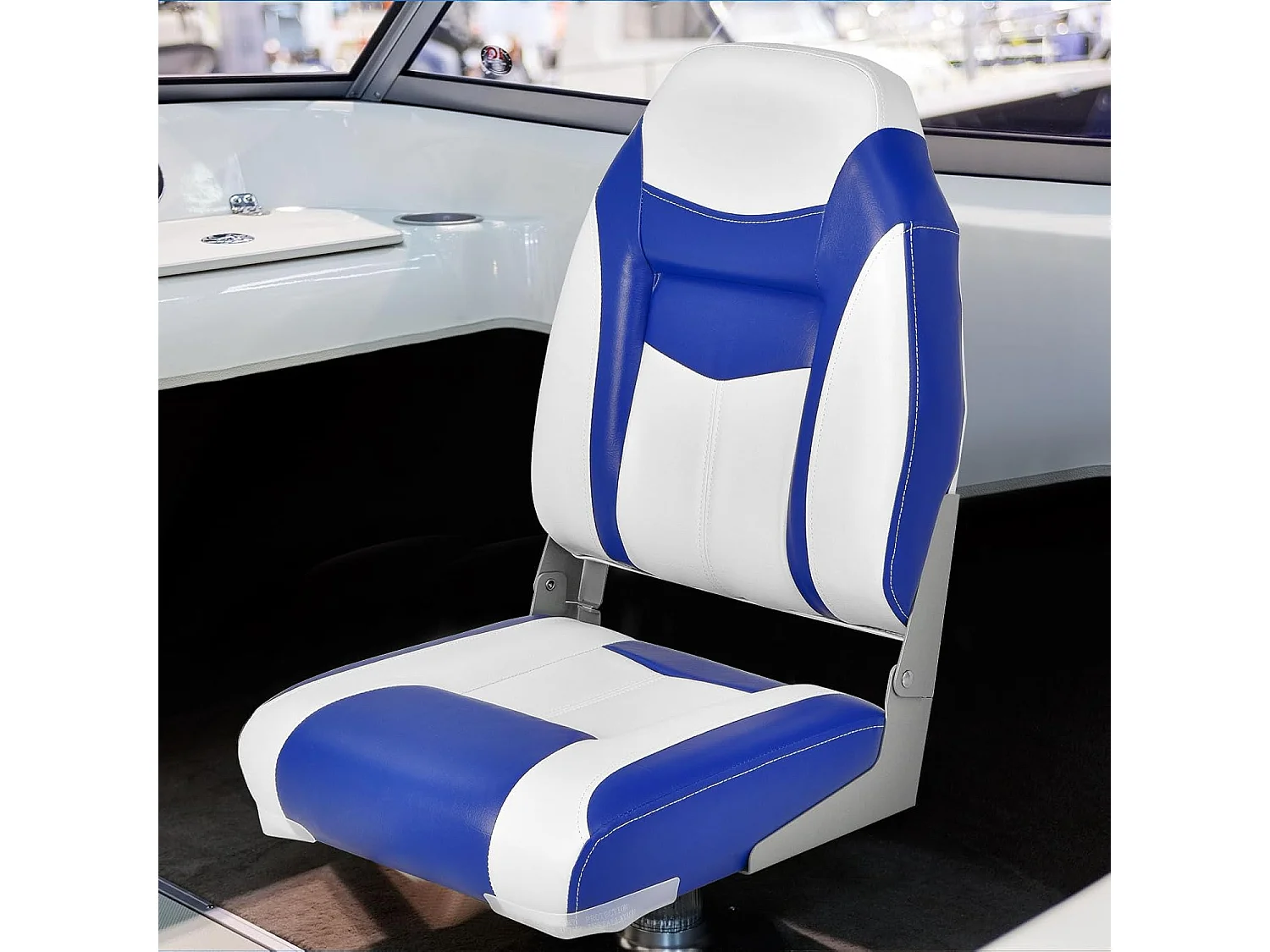 Bootstoel met hoge rugleuning, opklapbare bootstoel met 10 cm dikke sponsvulling, gevoerde stuurstoel voor boten (blauw-wit, enkel)ZB32744