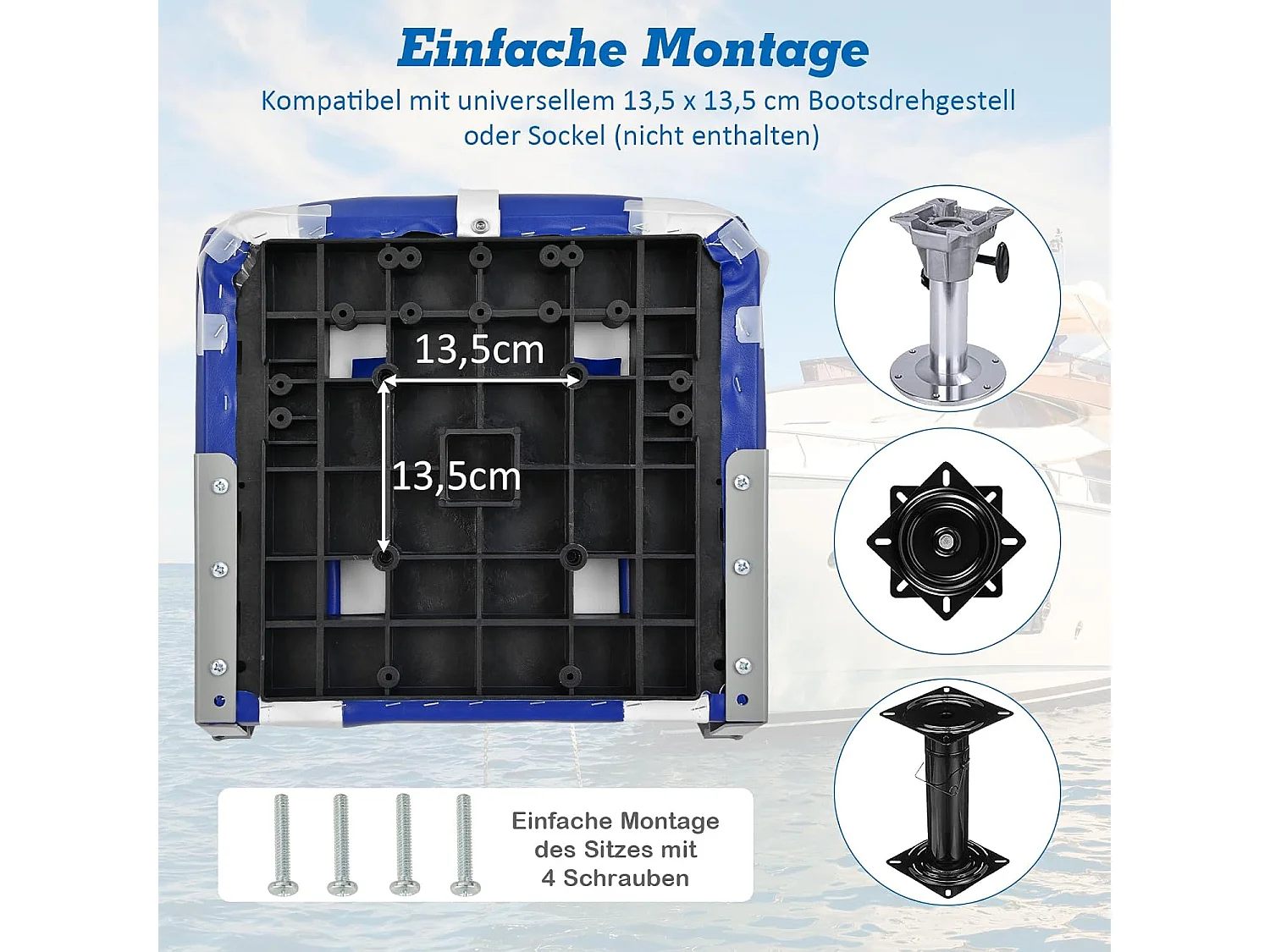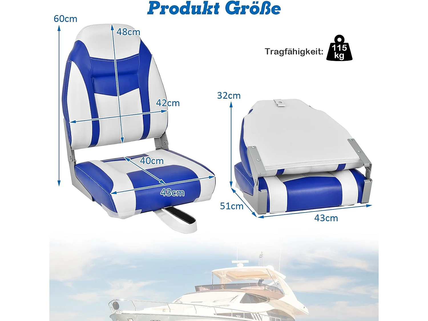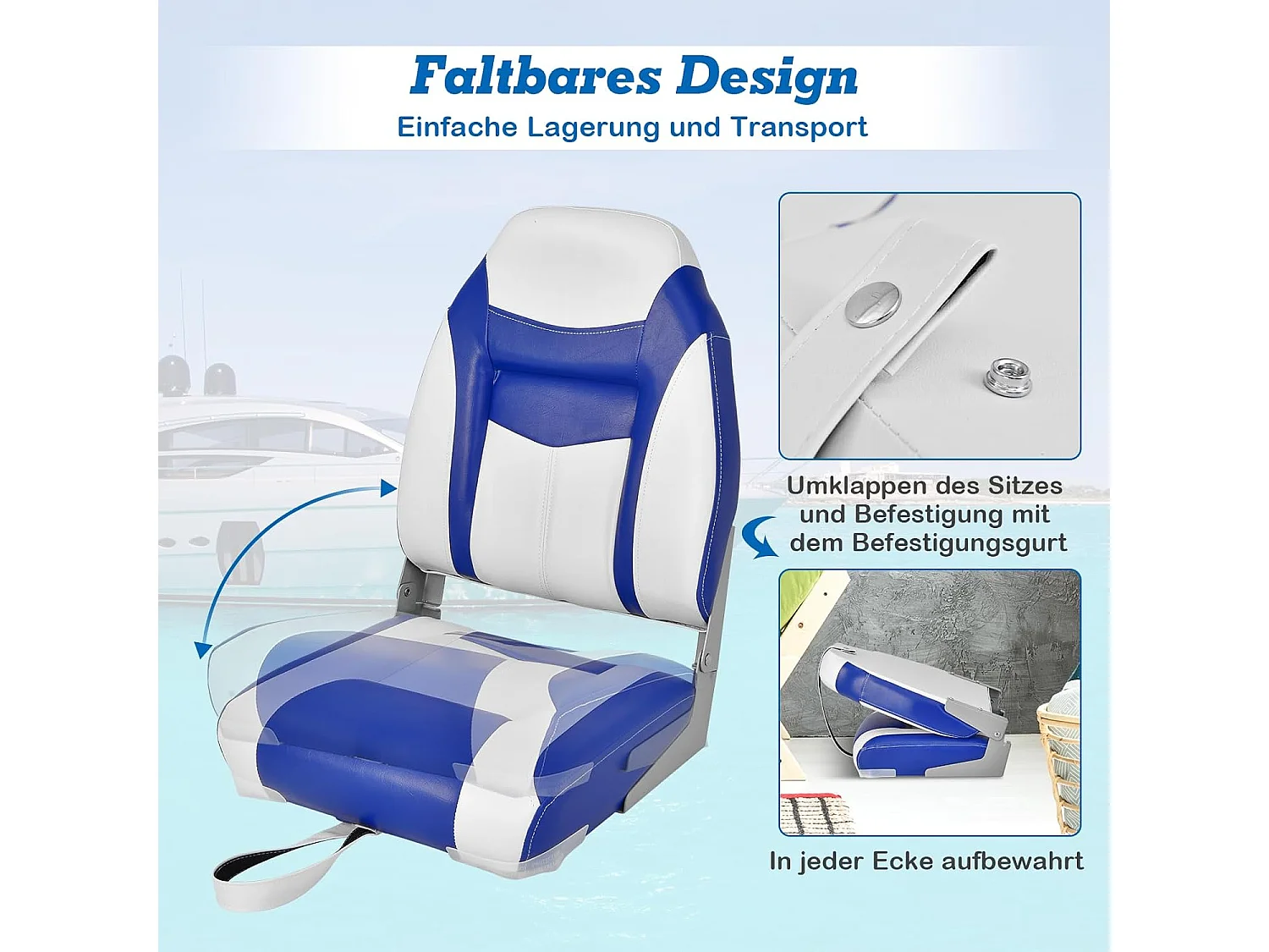 Set van 2 bootstoelen inklapbaar, bootstoel met 11 cm dikke sponsvulling, gevoerde stuurstoel, blauw-wit, 50 x 42 x 52 cmZB32669