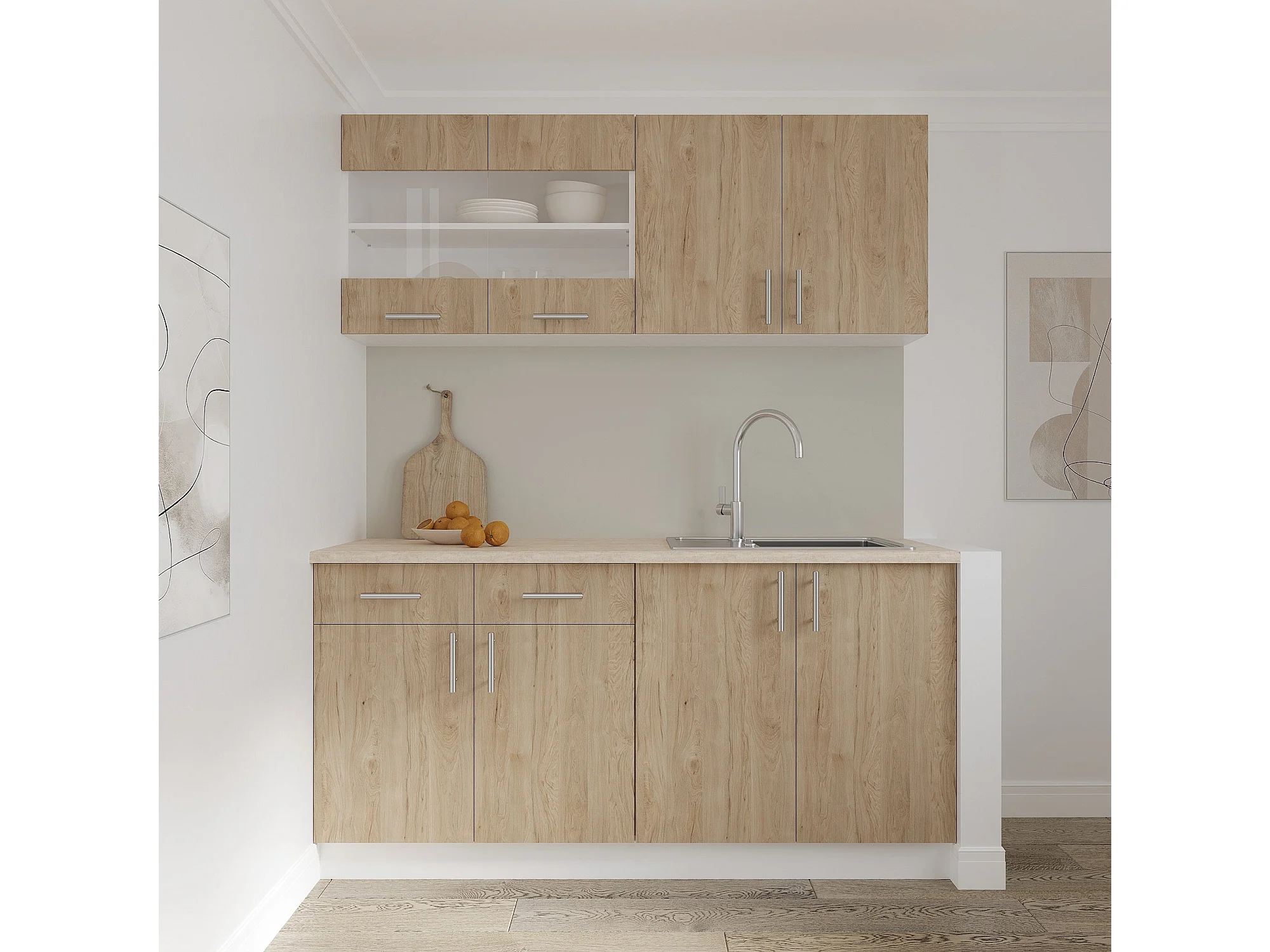 Bovenkast Karo, 2 Deuren, Natuurhout/Wit, 80 x 30 x 60 cm