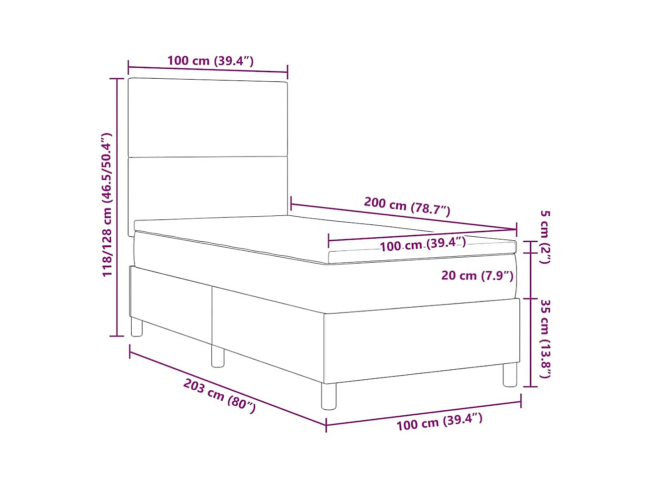 Boxspring bed met matras Donkergrijs 100 x 200 cm Stof