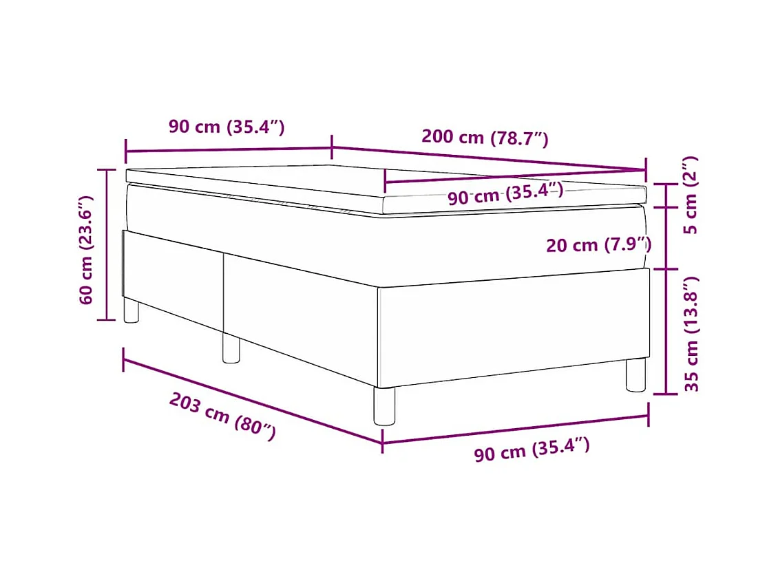 Boxspring bed met matras Donkergrijs 90 x 200 cm Stof