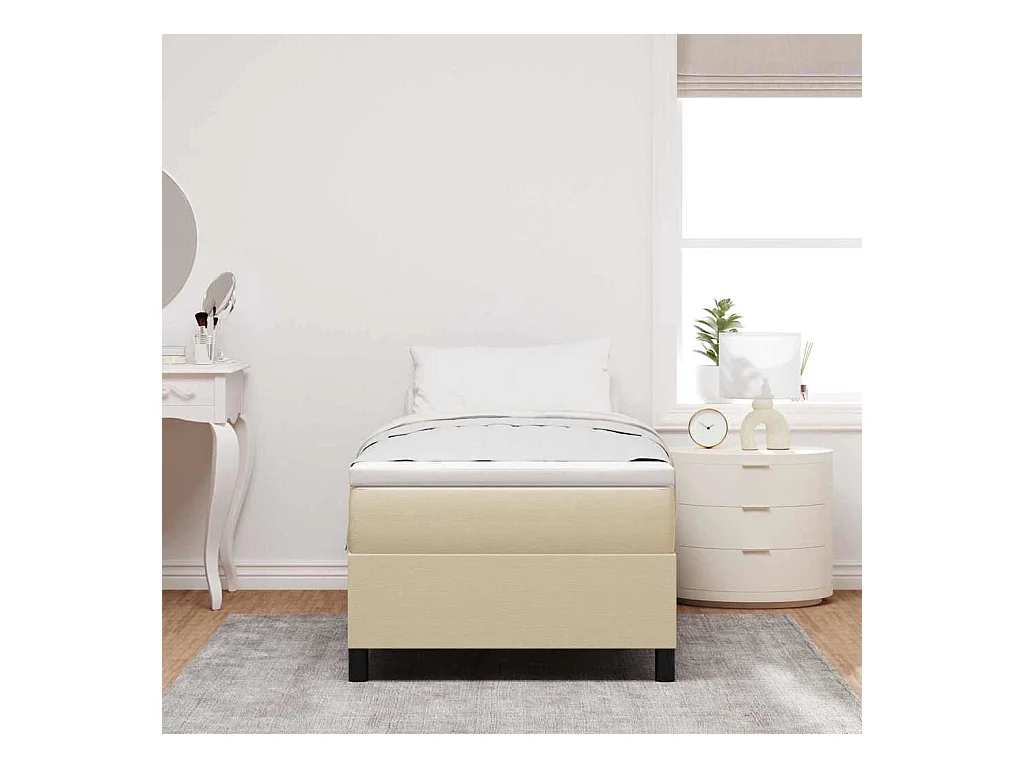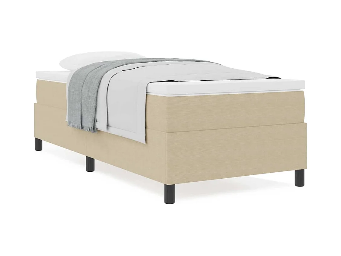 Boxspring bed Lichtgrijs en wit. 203 x 90 x 88 cm Katoenen stof