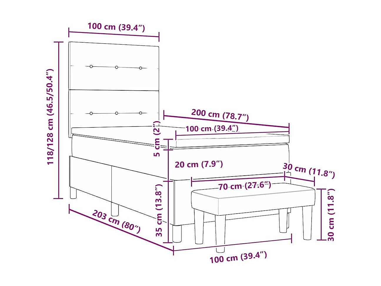 Boxspring bed met hoofdeinde Zwart 100 x 200 cm Stof