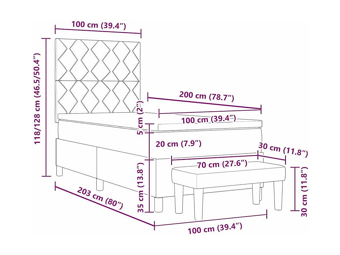 Boxspring bed met hoofdeinde Zwart 100 x 200 cm Stof