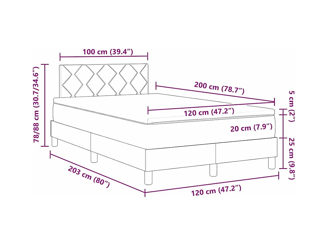 Boxspring bed met matras met hoofdeinde Zwart 120 x 200 cm Stof