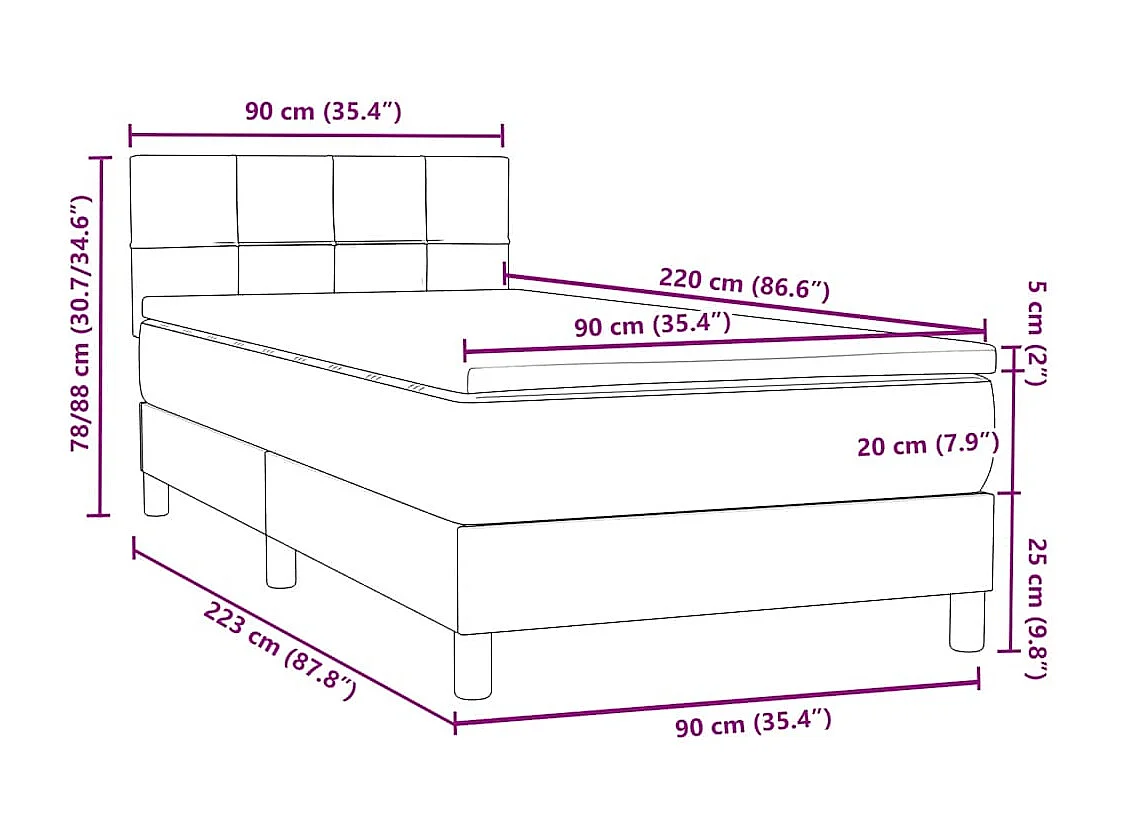Boxspring met matras fluweel donkergrijs 90x220 cm