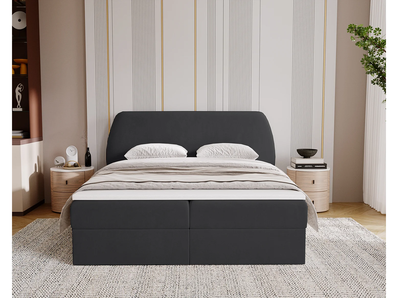 Boxspringbed 160x200 Cartagena - bed met geïntegreerde veringmatras, topper, opbergruimte - gestoffeerd bed zwart (Komodo 23)