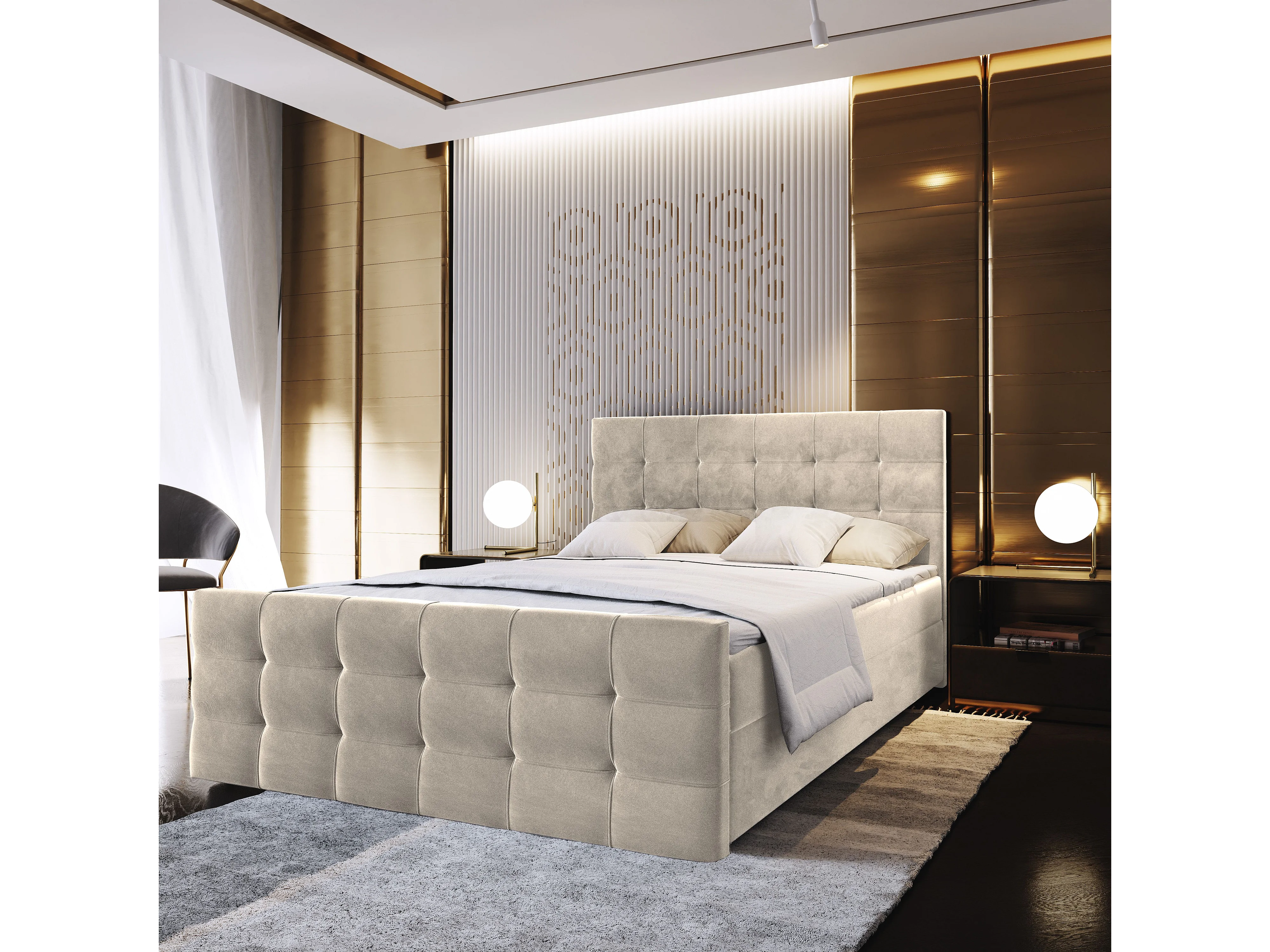 Boxspringbed AMON 140x200 cm Set met hoofdbord, bedbodem en matras, Beige