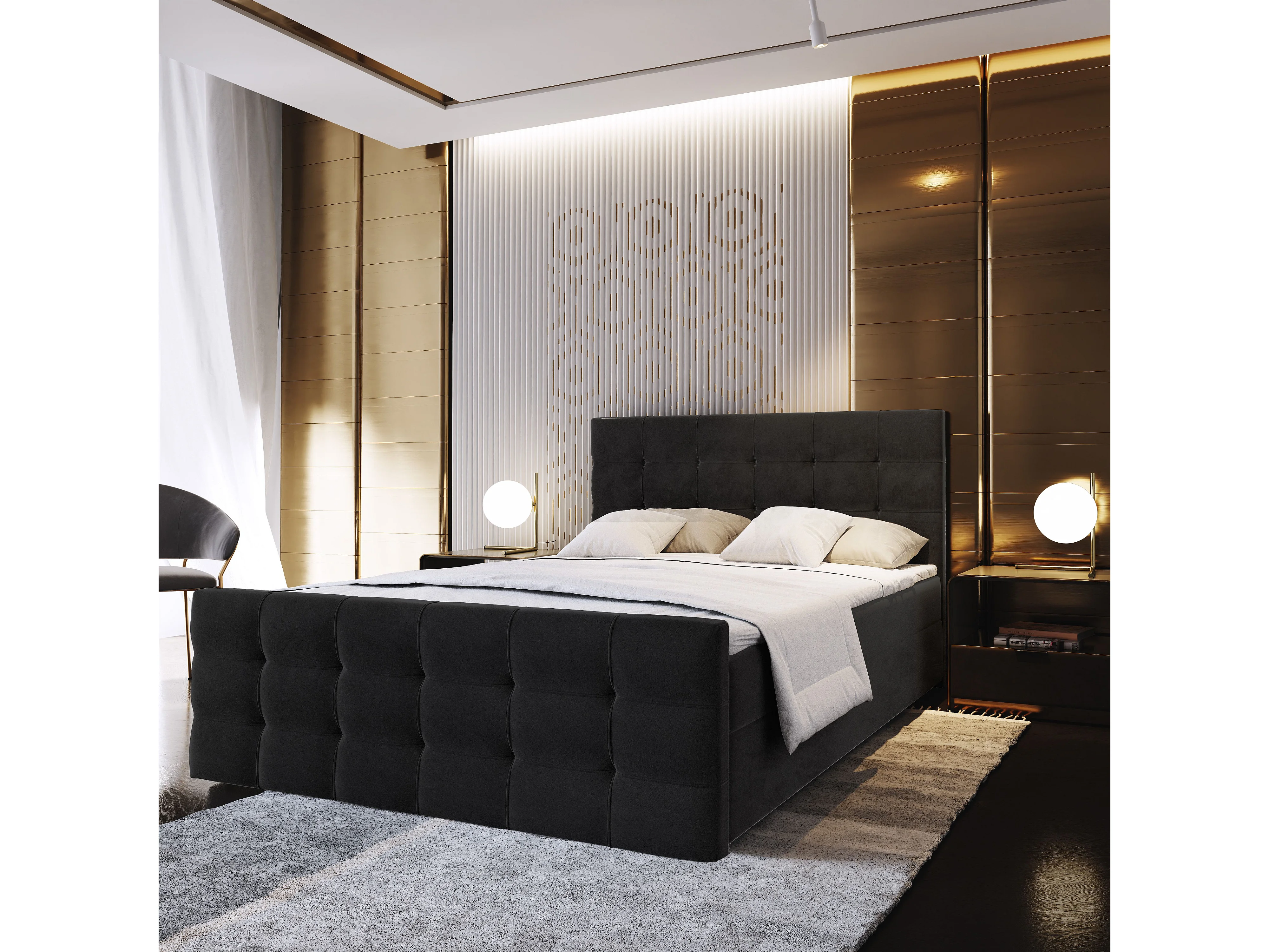 Boxspringbed AMON 180x200 cm Set met hoofdbord, bedbodem en matras, Zwart