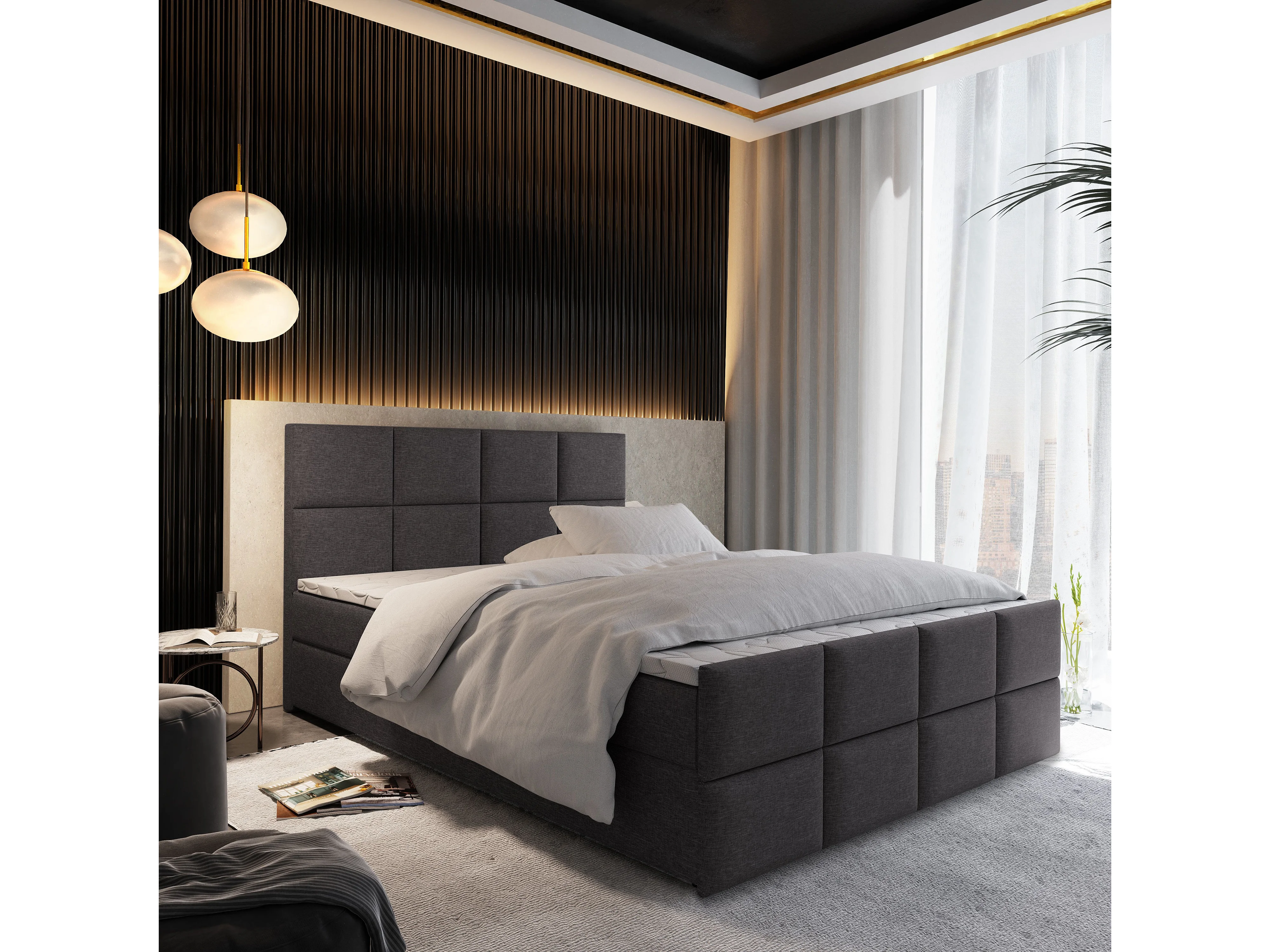 Boxspringbed ARIEL 160x200 cm Set met hoofdbord, bedbodem en matras, Grijs