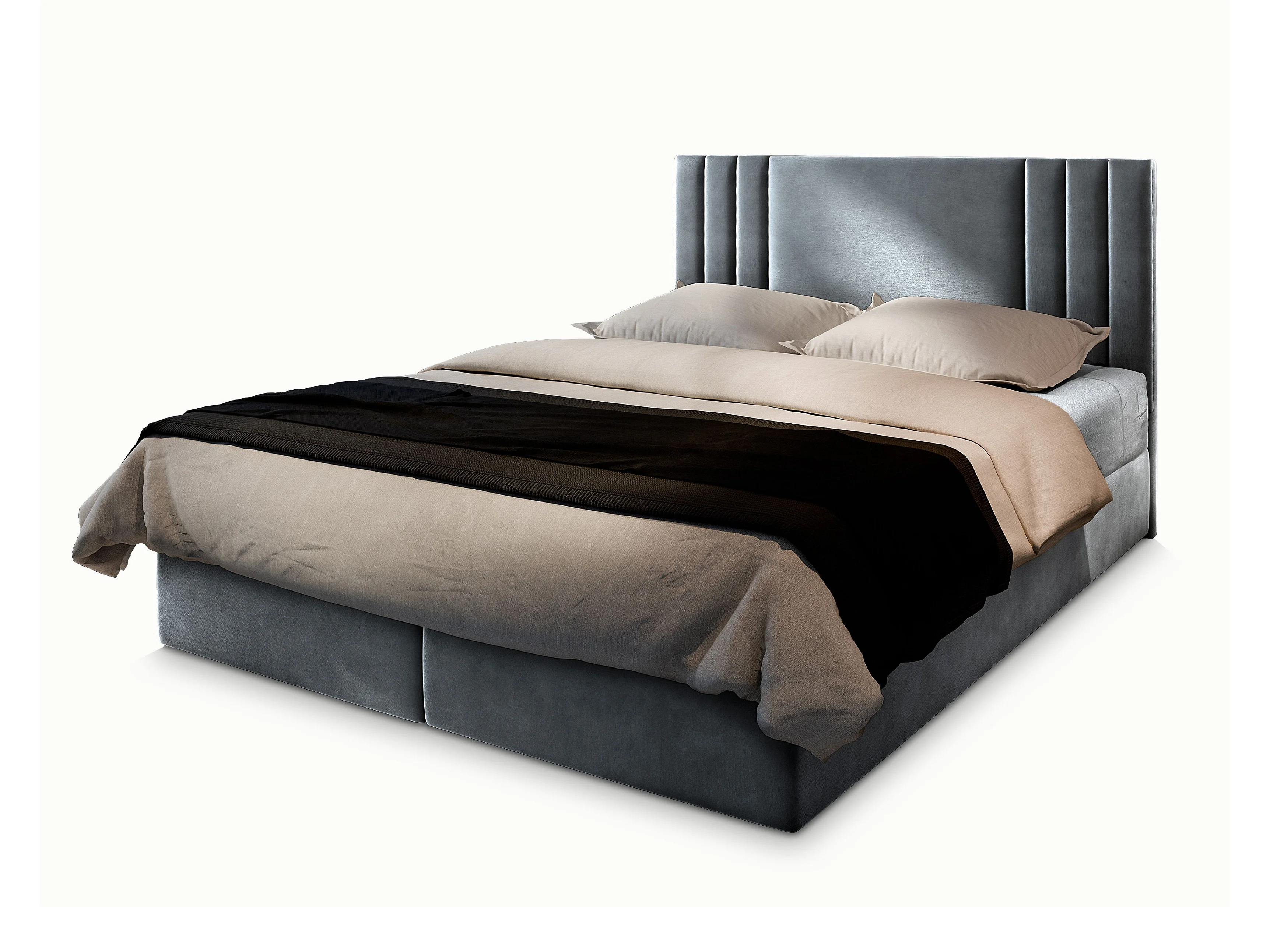 Boxspringbed BRES 140x200 cm Set met hoofdbord, bedbodem en matras, Lichtgrijs