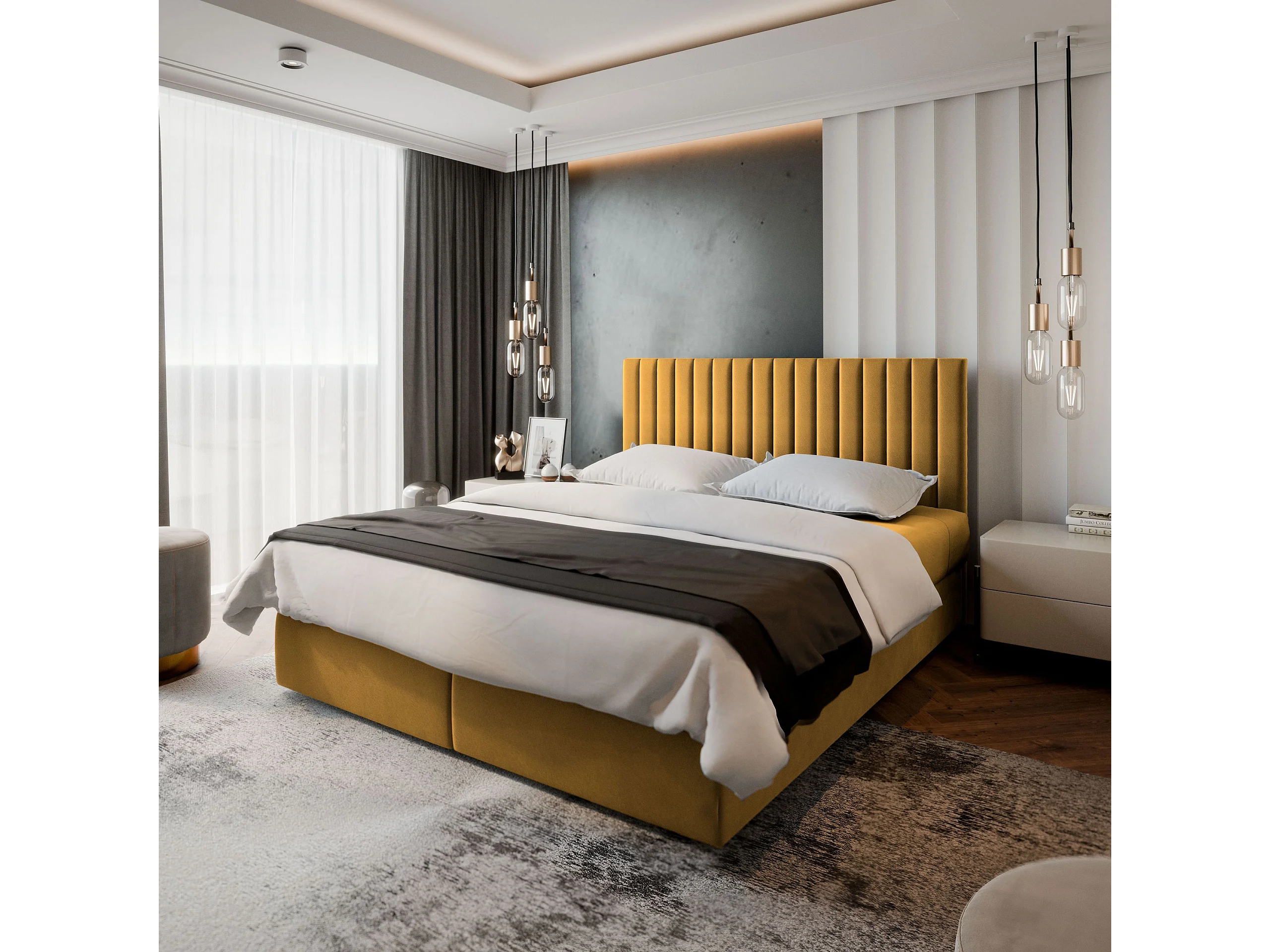 Boxspringbed BRESEL 140x200 cm Set met hoofdbord, bedbodem en matras, Geel