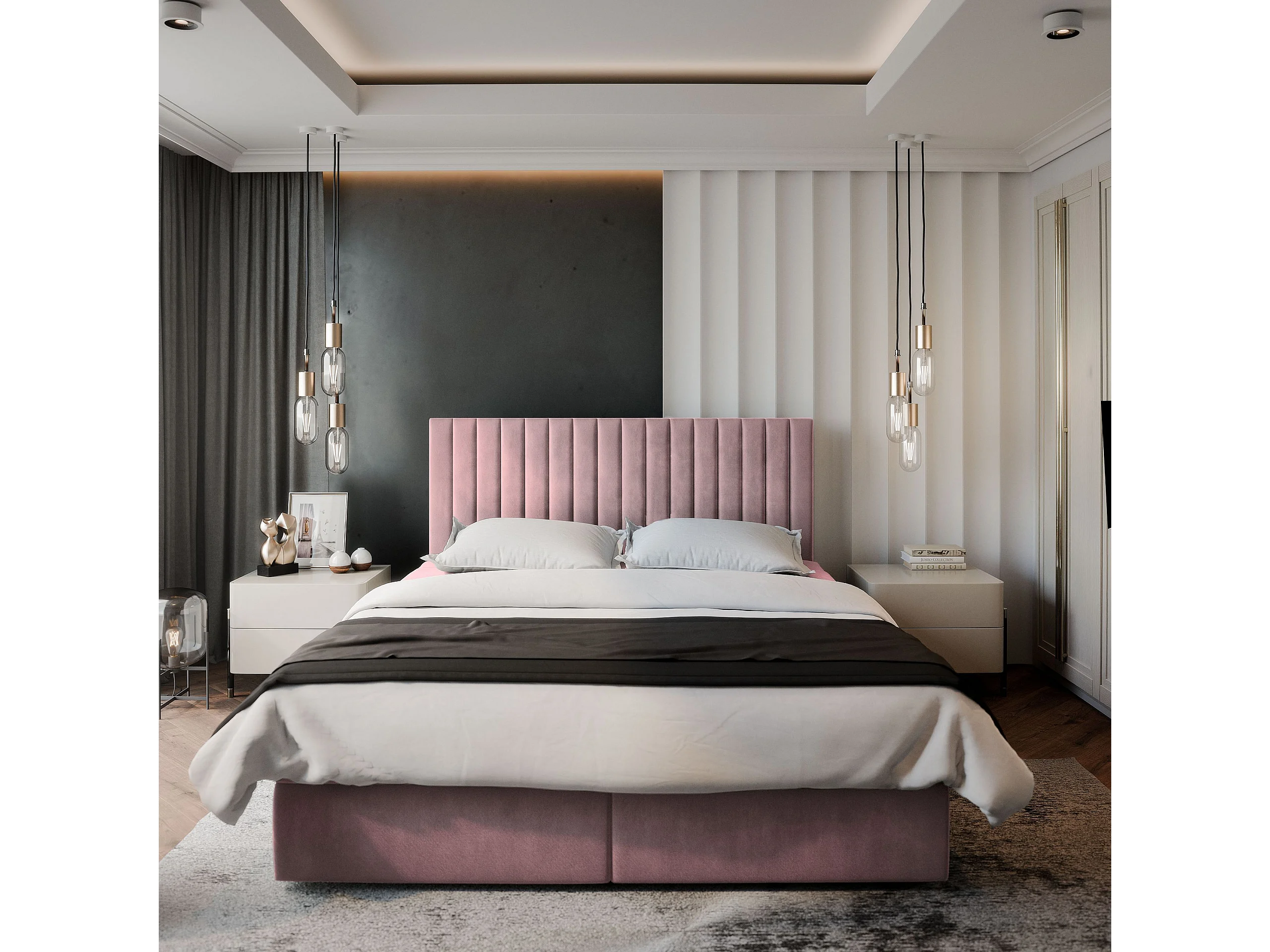 Boxspringbed BRESEL 140x200 cm Set met hoofdbord, bedbodem en matras, Poederroze