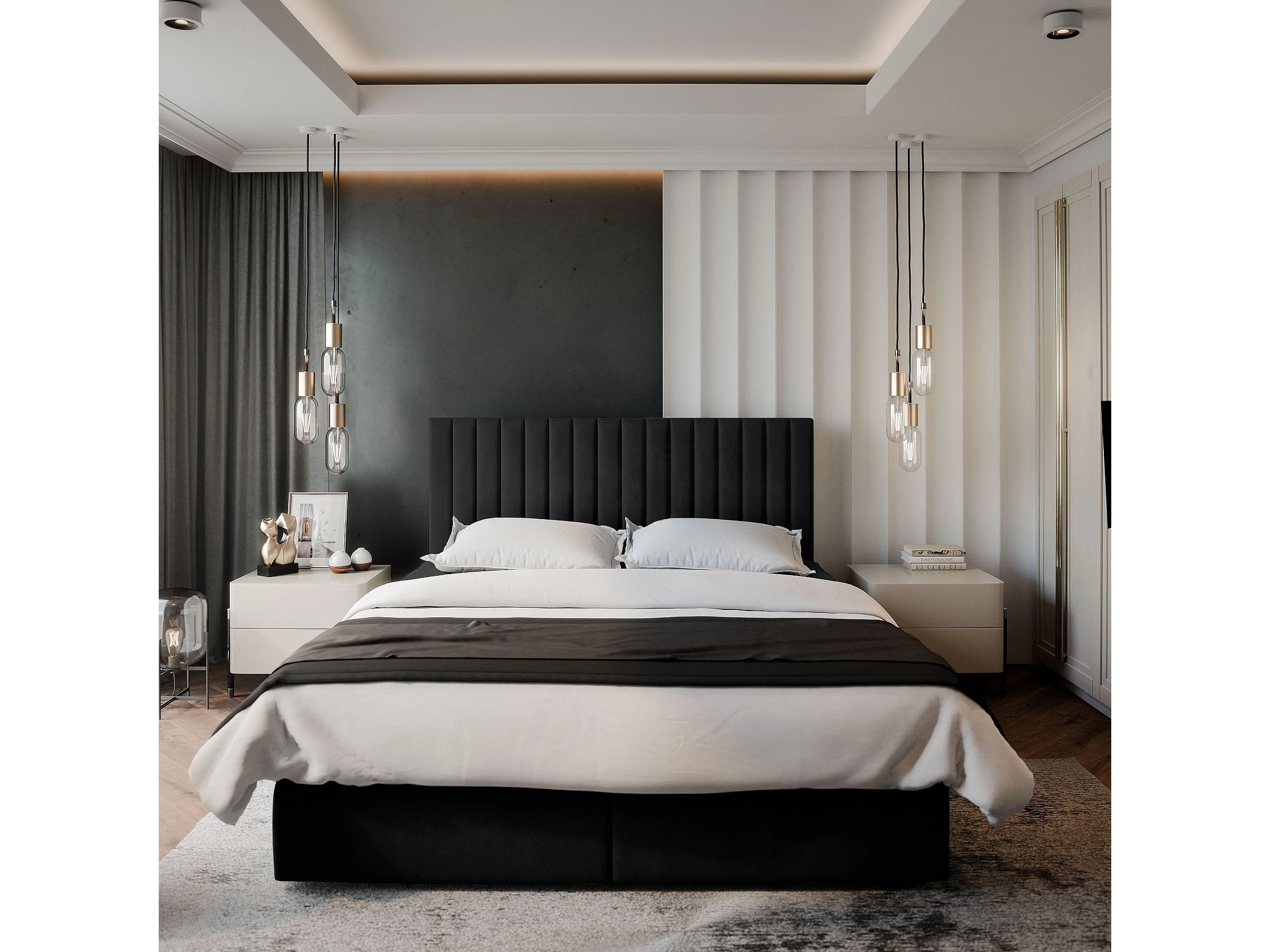 Boxspringbed BRESEL 140x200 cm Set met hoofdbord, bedbodem en matras, Zwart
