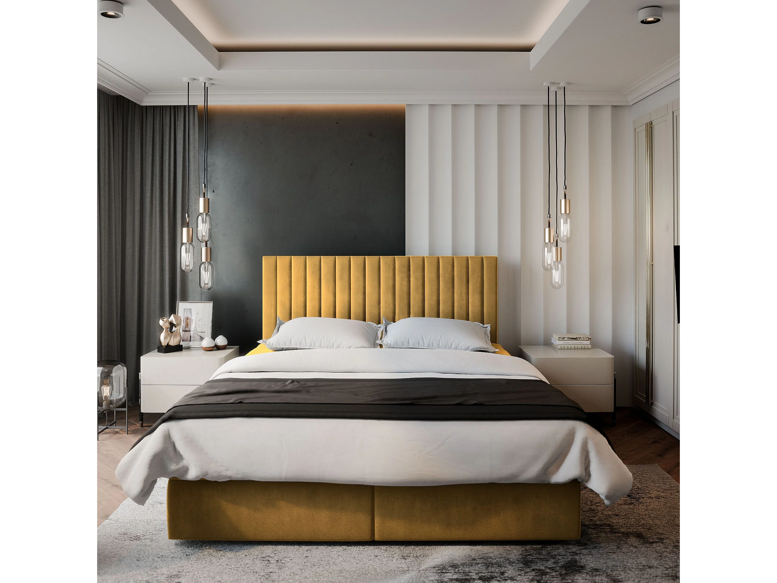 Boxspringbed BRESEL 160x200 cm Set met hoofdbord, bedbodem en matras, Geel