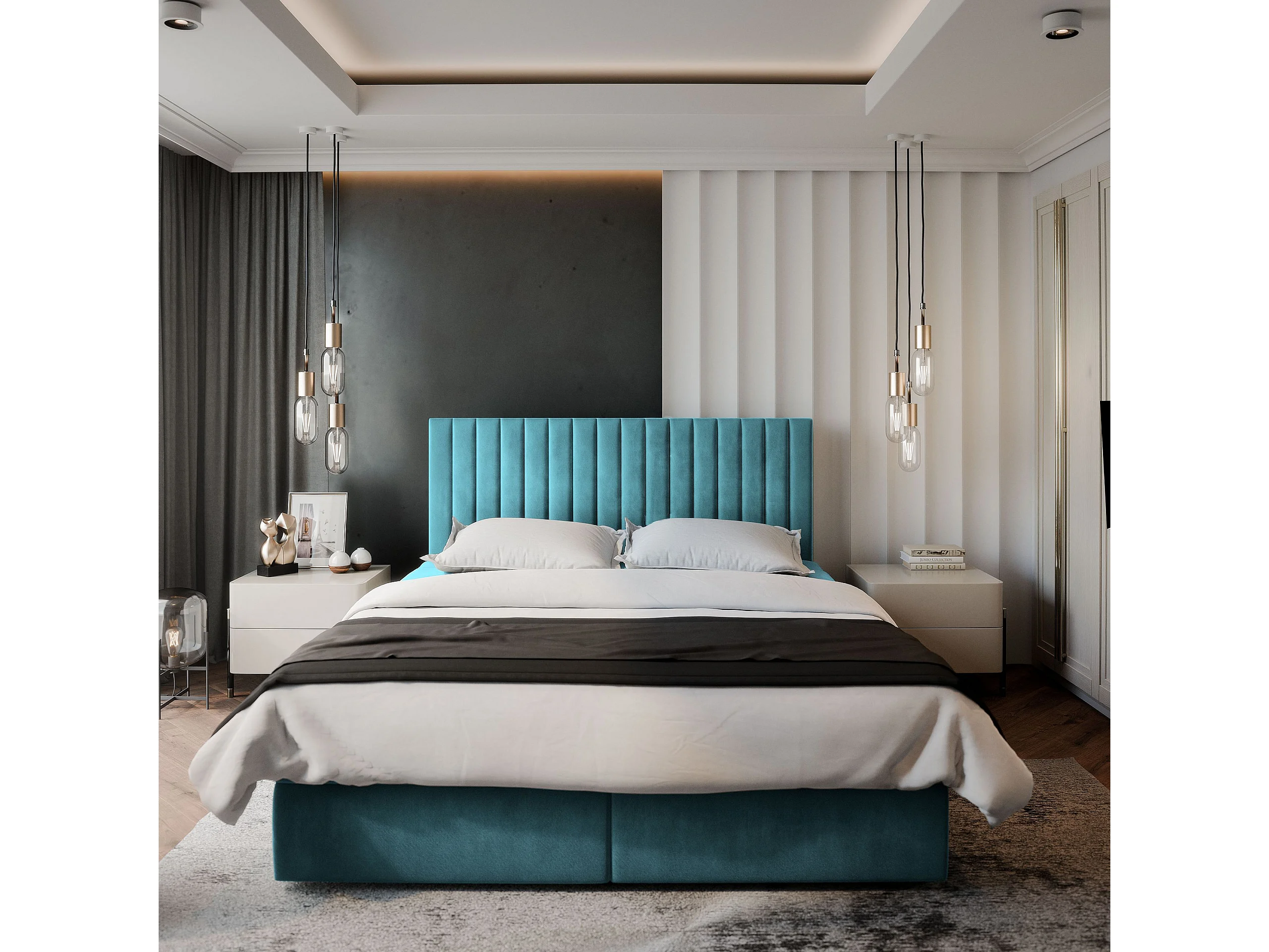 Boxspringbed BRESEL 180x200 cm Set met hoofdbord, bedbodem en matras, Groenblauw