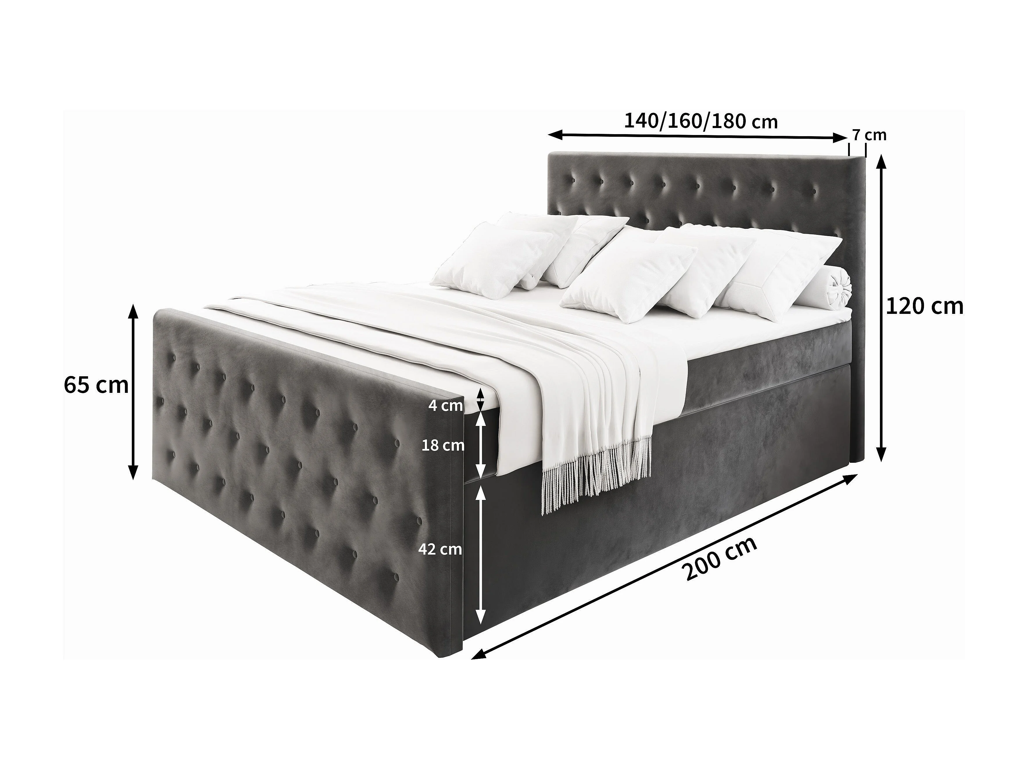 Boxspringbed FONDI 140x200 cm Set met hoofdbord, bedbodem en matras, Zwart