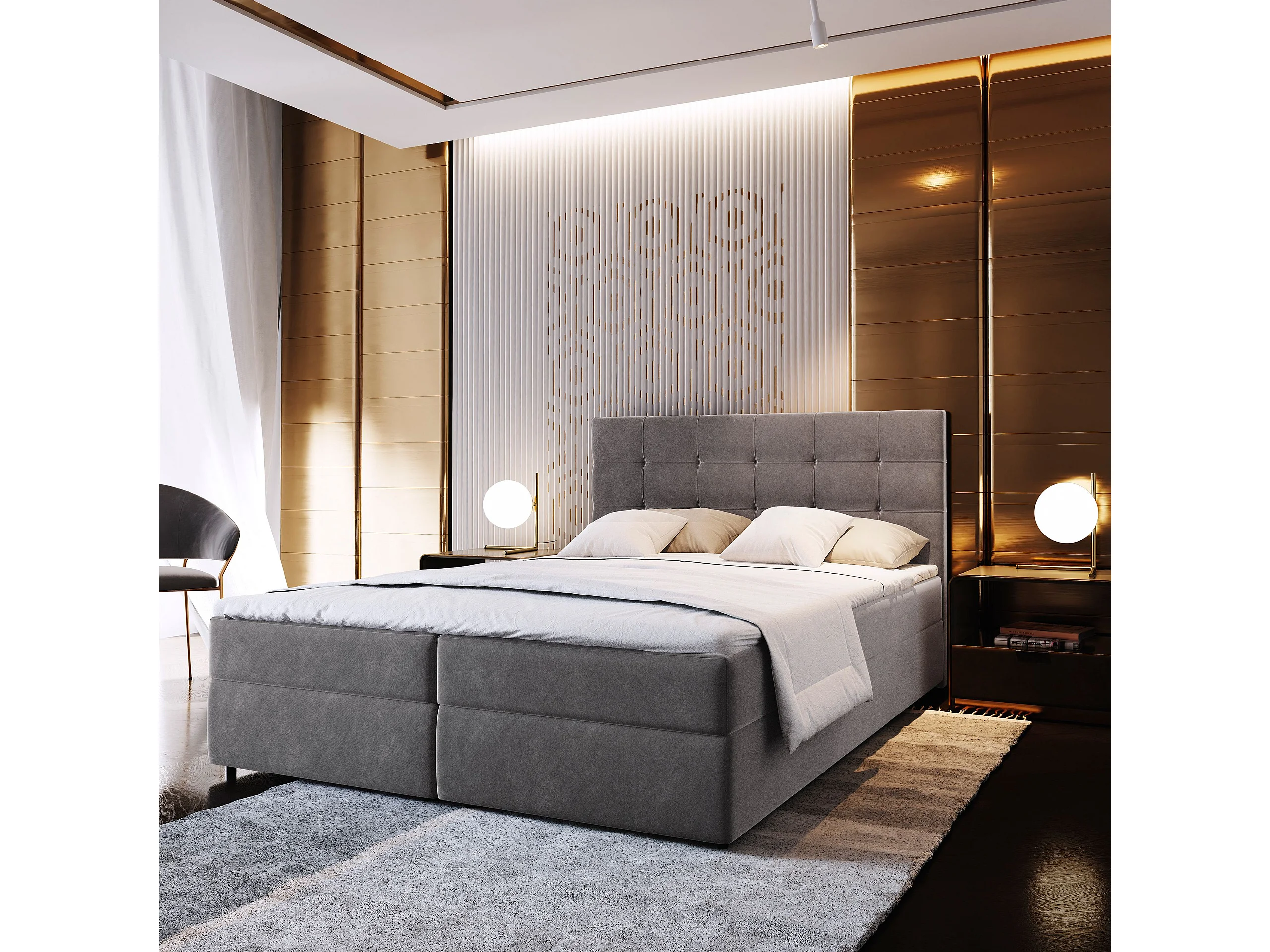 Boxspringbed GLOS 180x200 cm Set met hoofdbord, bedbodem en matras, Grijs