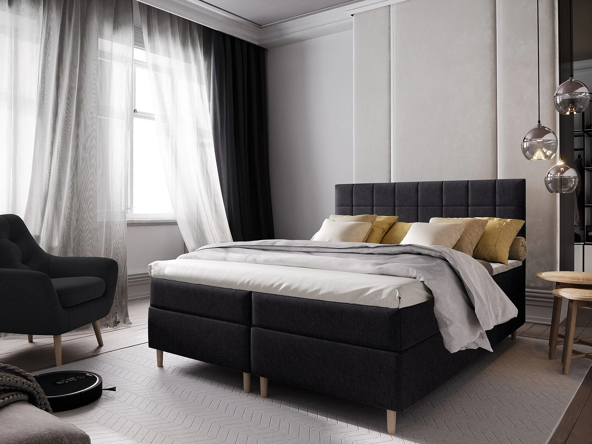 Boxspringbed IBIZA 140x200 cm Set met hoofdbord, bedbodem en matras, Zwart