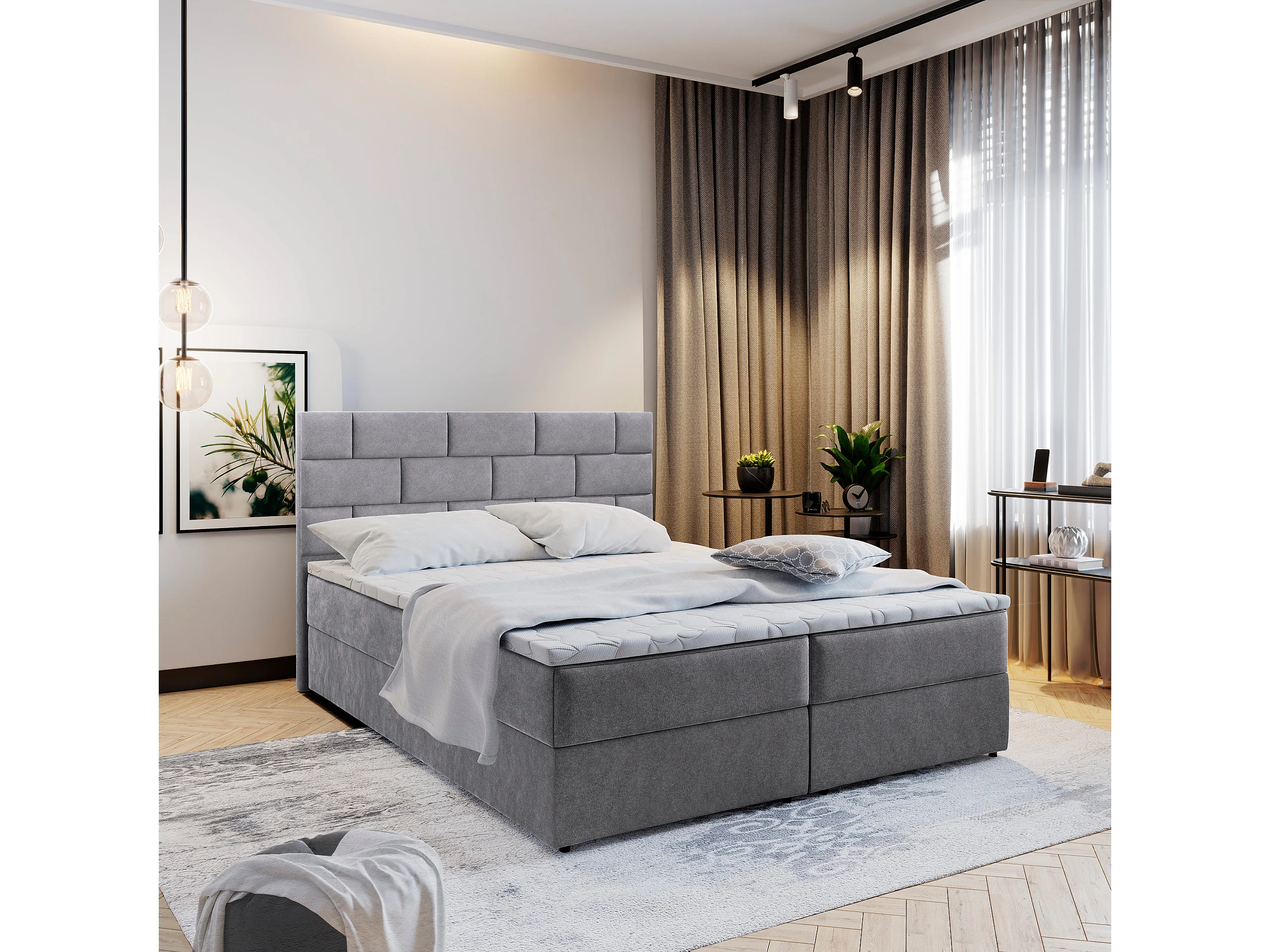 Boxspringbed KERLO 140x200 cm Set met hoofdbord, bedbodem en matras, Grijs