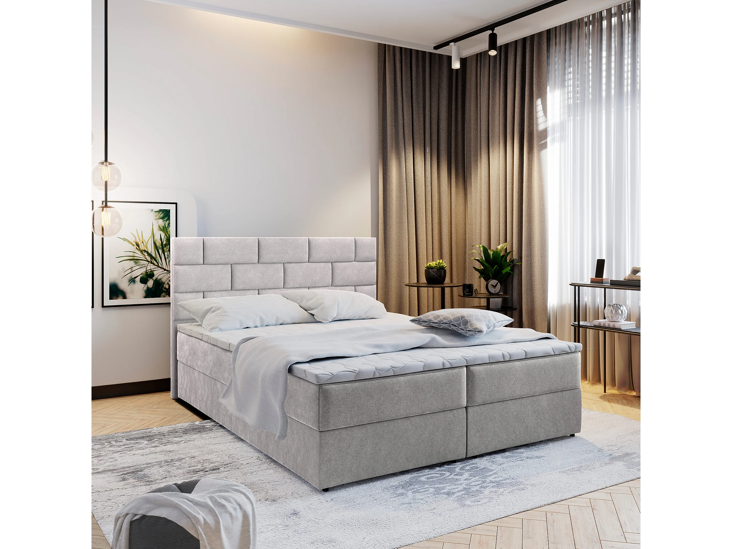 Boxspringbed KERLO 160x200 cm Set met hoofdbord, bedbodem en matras, Beige