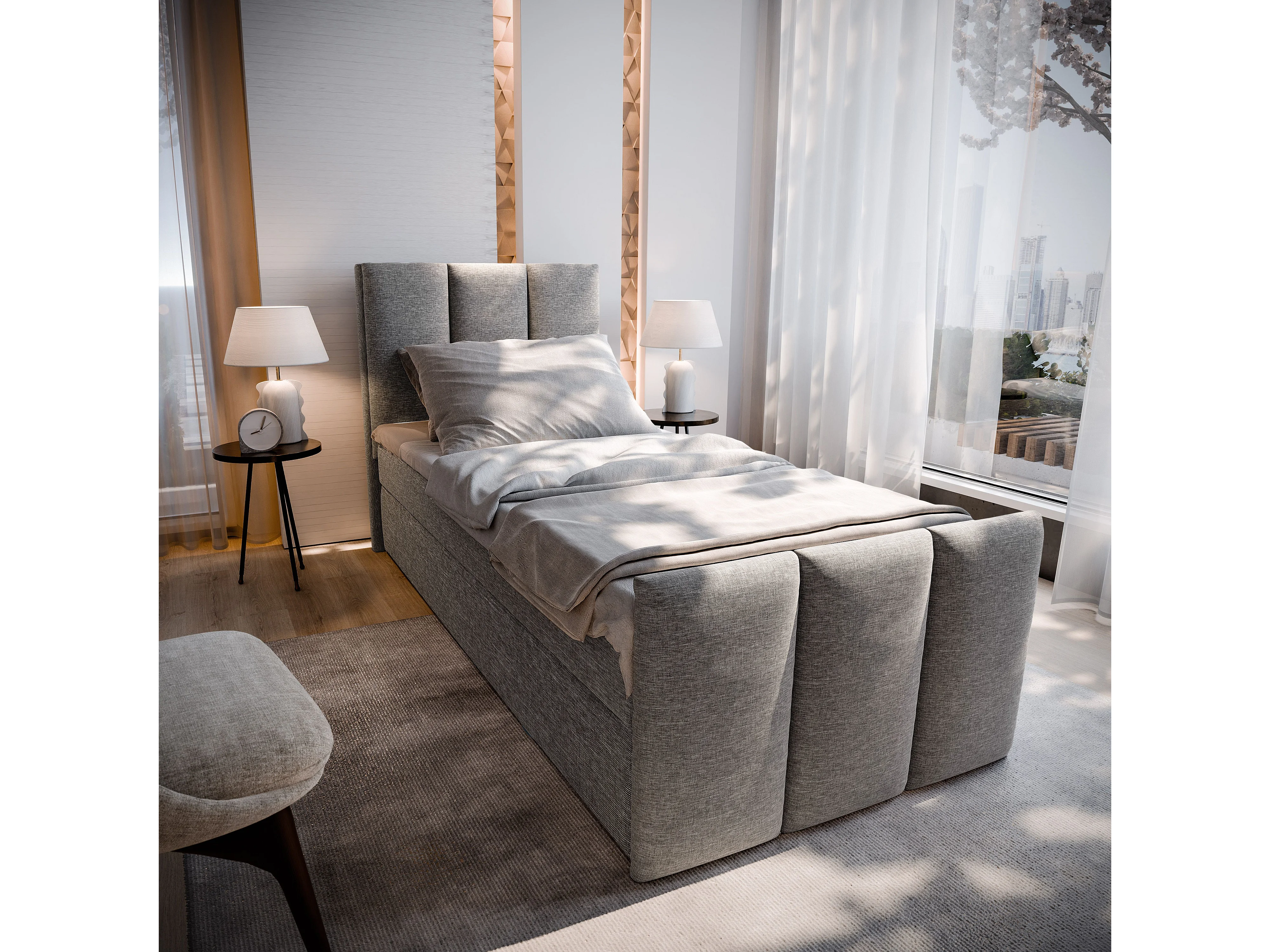 Boxspringbed LAGO 90x200 cm Set met hoofdbord, bedbodem en matras, Lichtgrijs