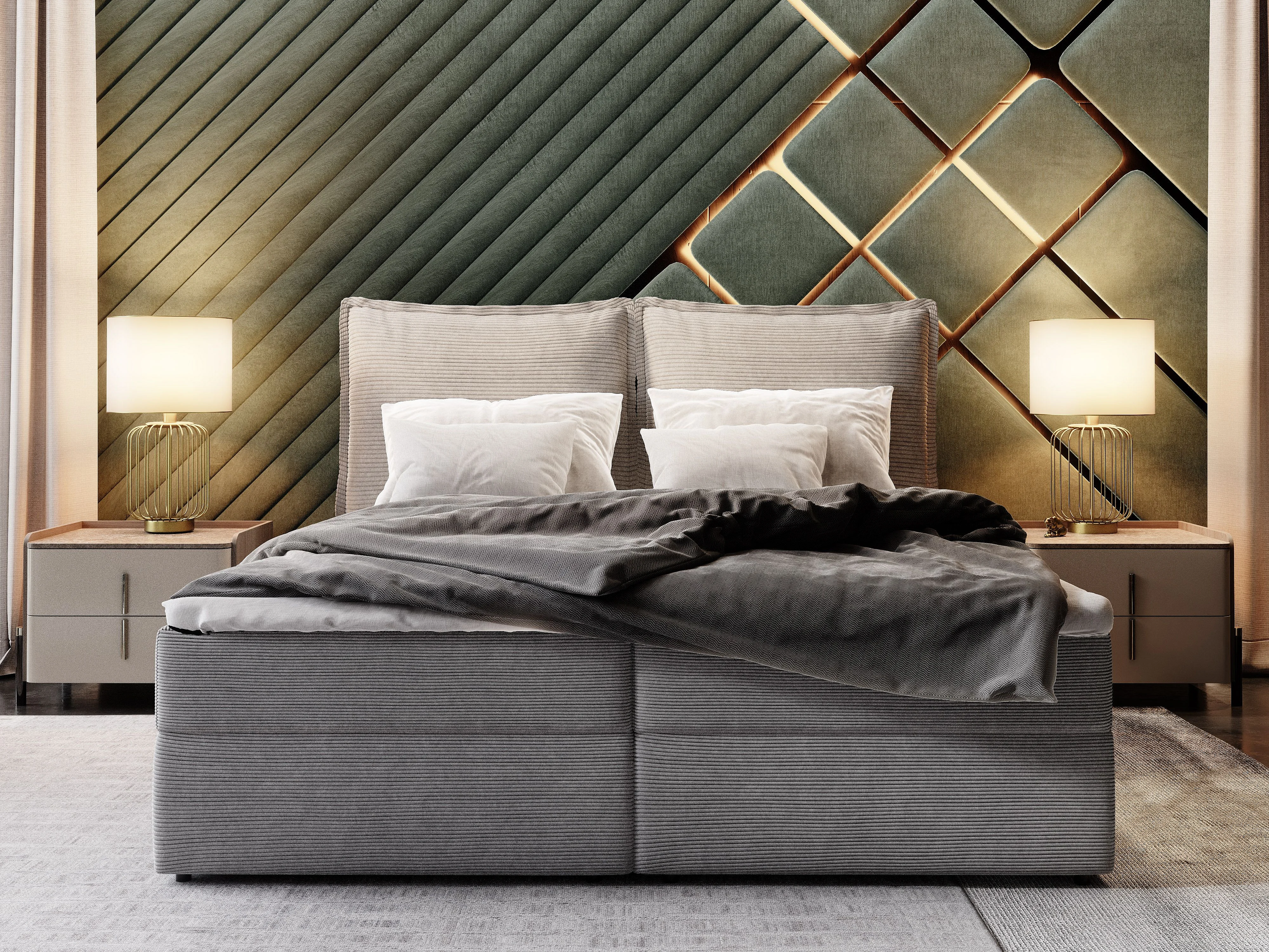 Boxspringbed LENTE 140x200 cm Set met hoofdbord, bedbodem en matras, Bruin