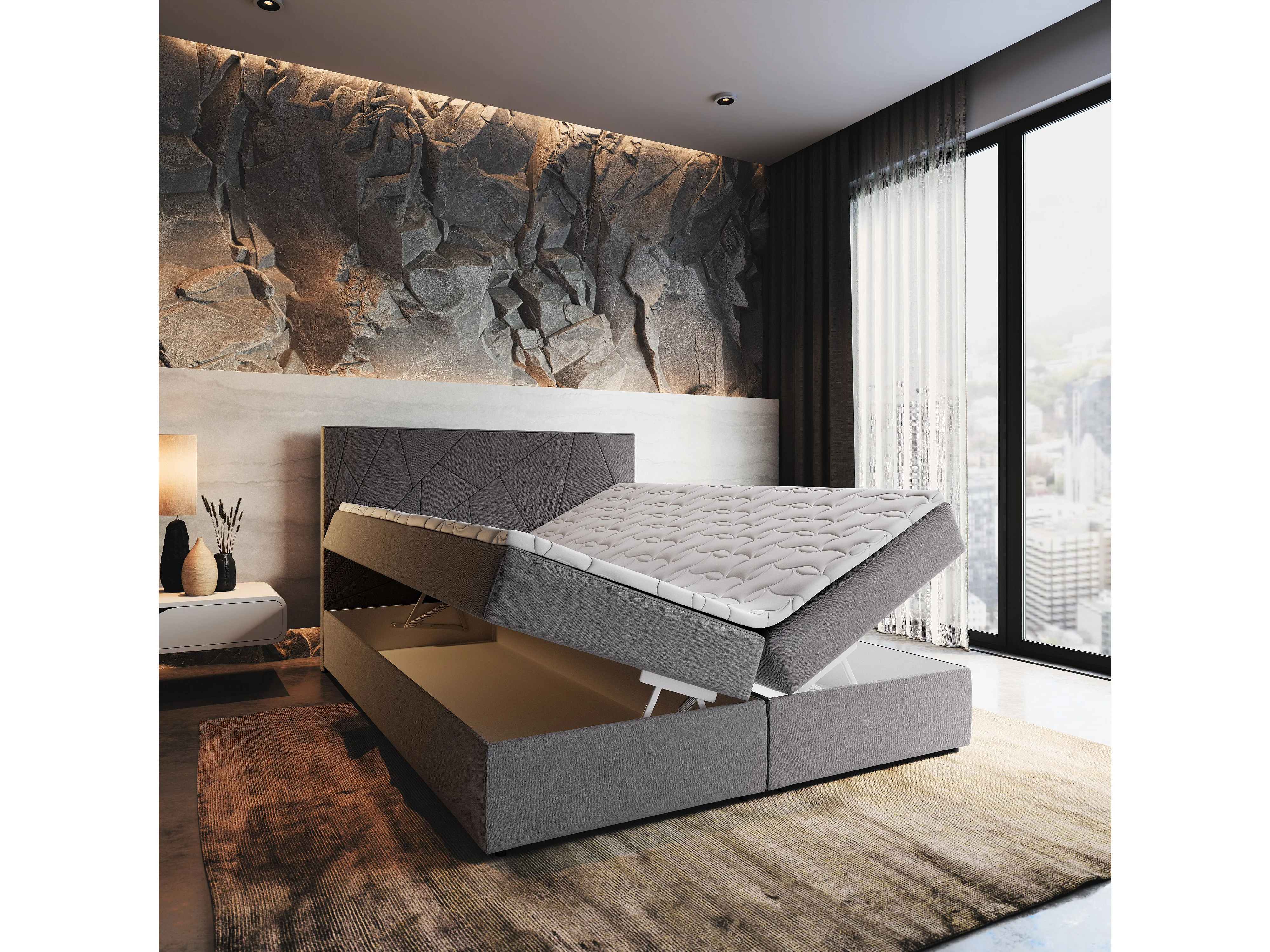 Boxspringbed MADO 160x200 cm Set met hoofdbord, bedbodem en matras, Lichtgrijs