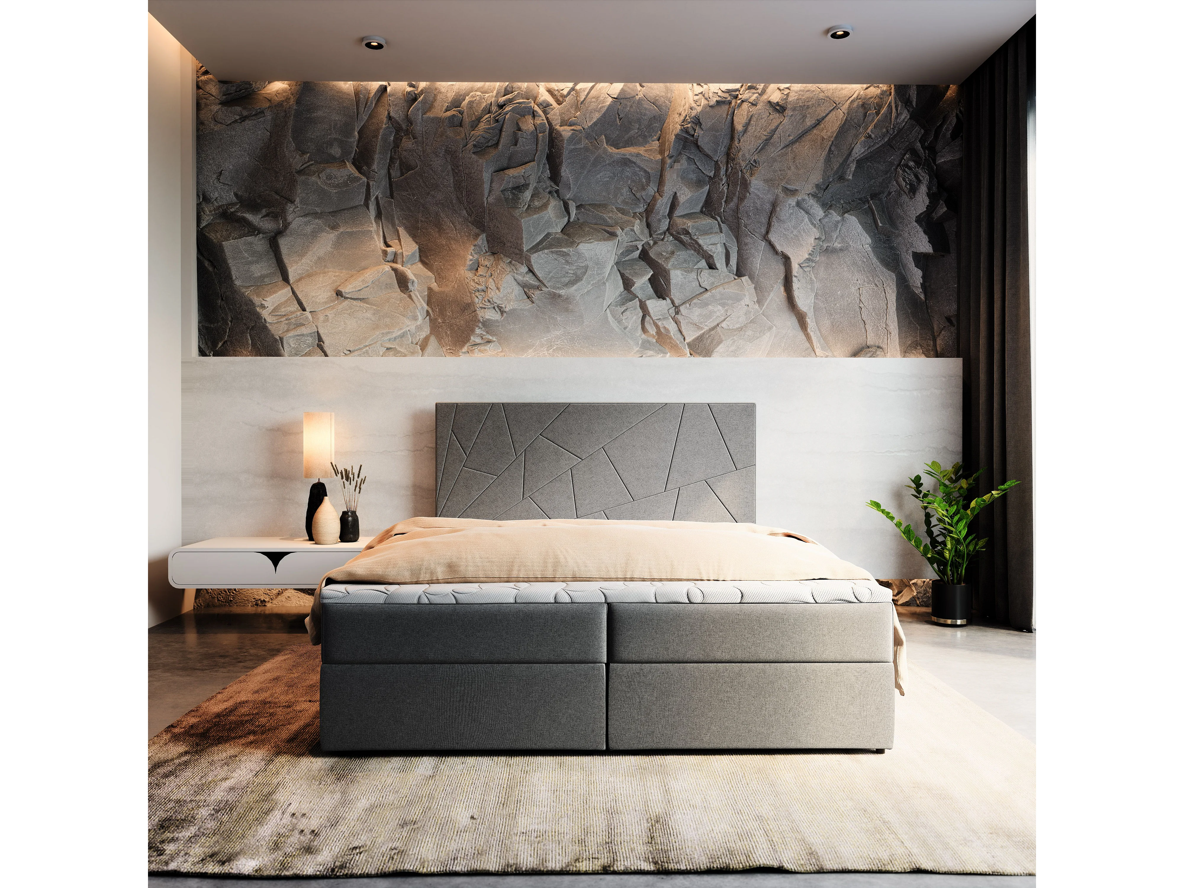 Boxspringbed MADO 160x200 cm Set met hoofdbord, bedbodem en matras, Zwart