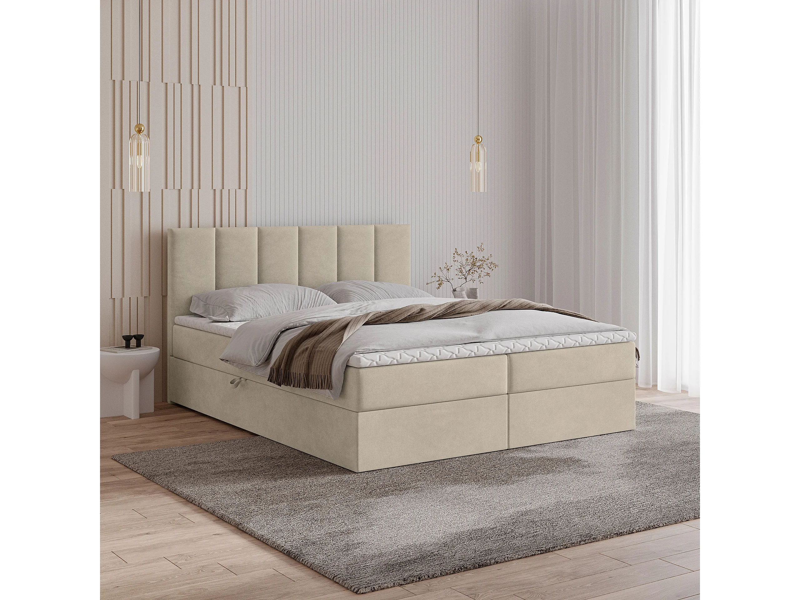 Boxspringbed MERIL 140x200 cm Set met hoofdbord, bedbodem en matras, Beige