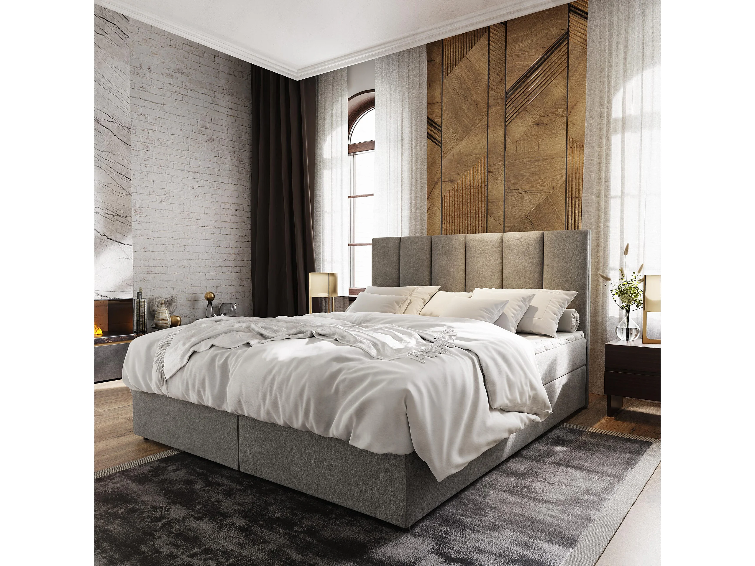 Boxspringbed MERIL 140x200 cm Set met hoofdbord, bedbodem en matras, Grijs