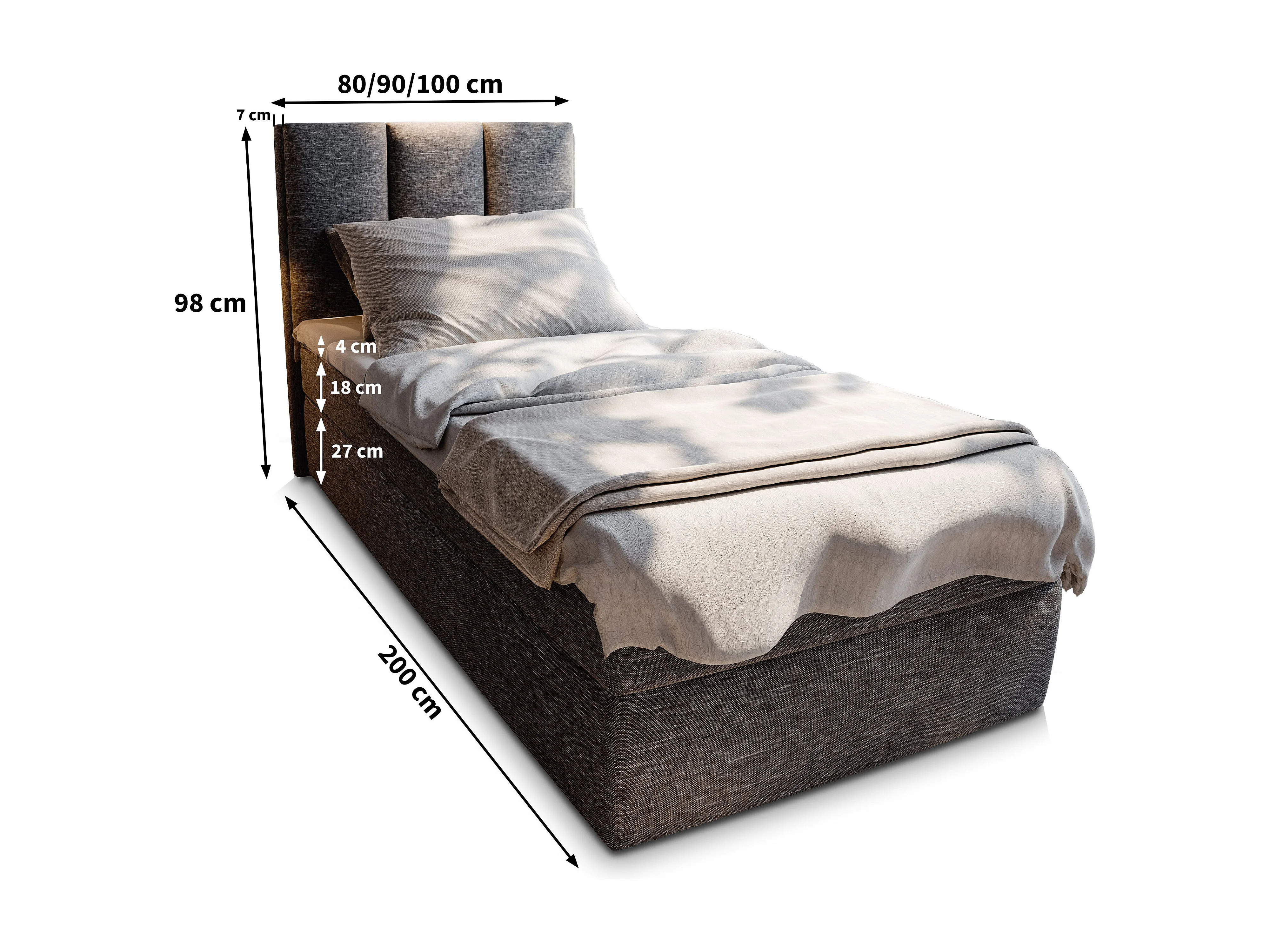 Boxspringbed MERIL 80x200 cm Set met hoofdbord, bedbodem en matras, Bruin