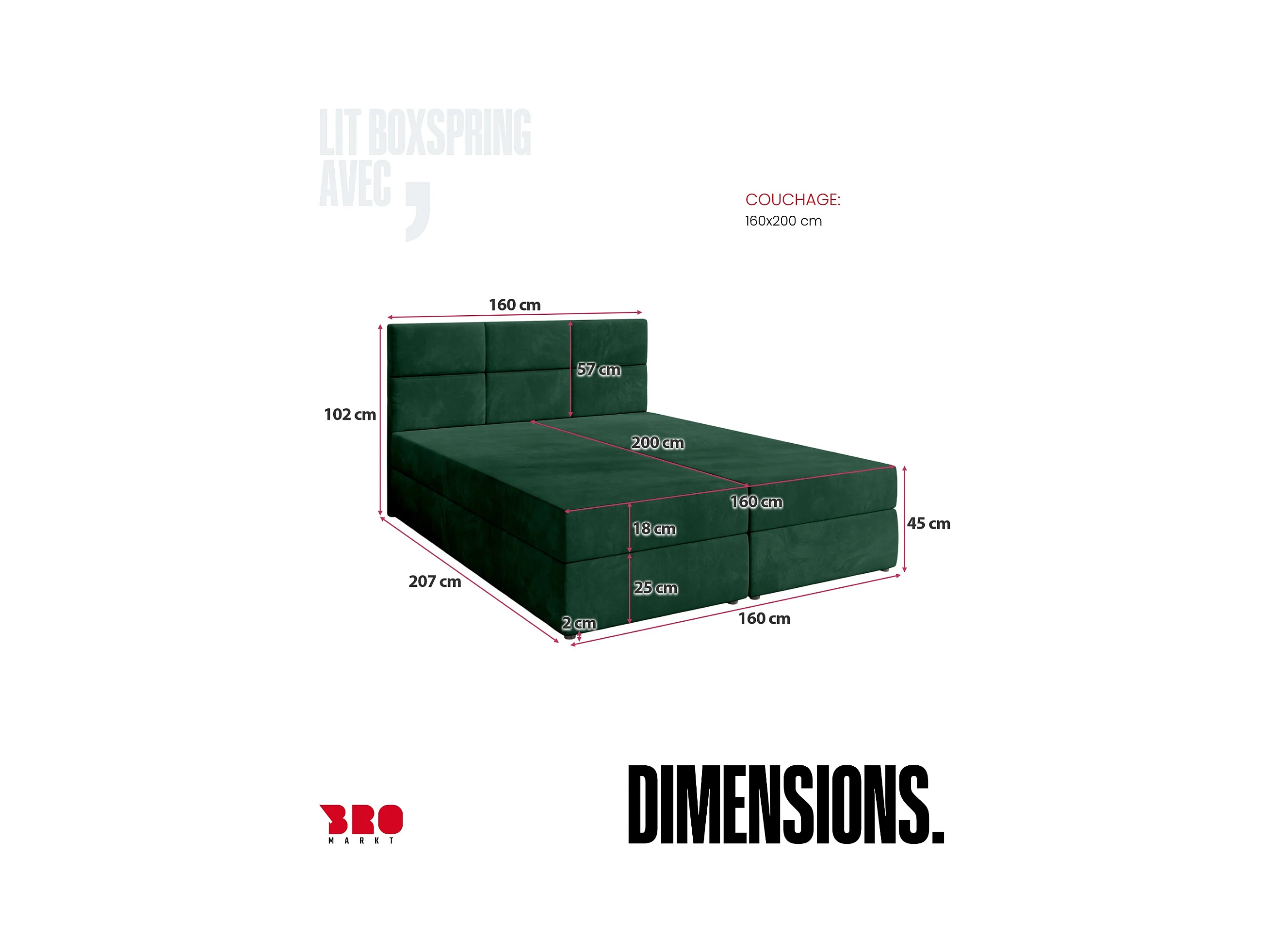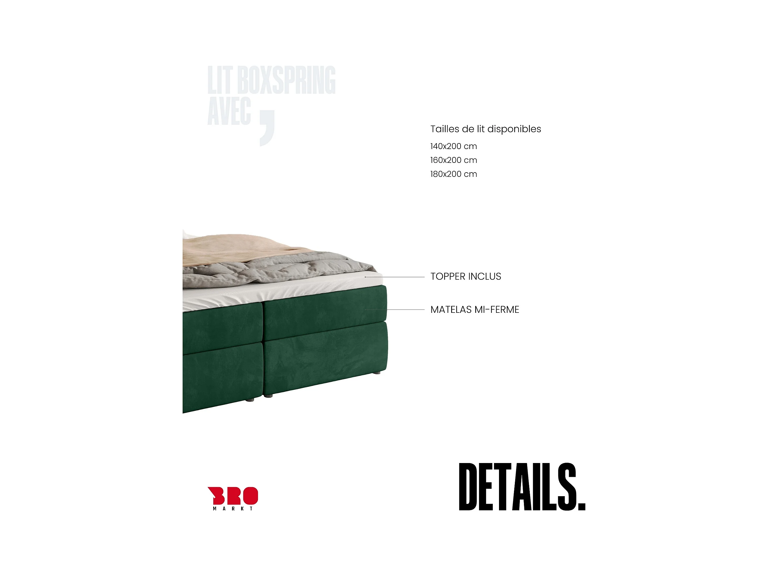 Boxspringbed 160x200 – opbergruimte en topper – hydrofobe chenille – donkergroen – TOGENTS