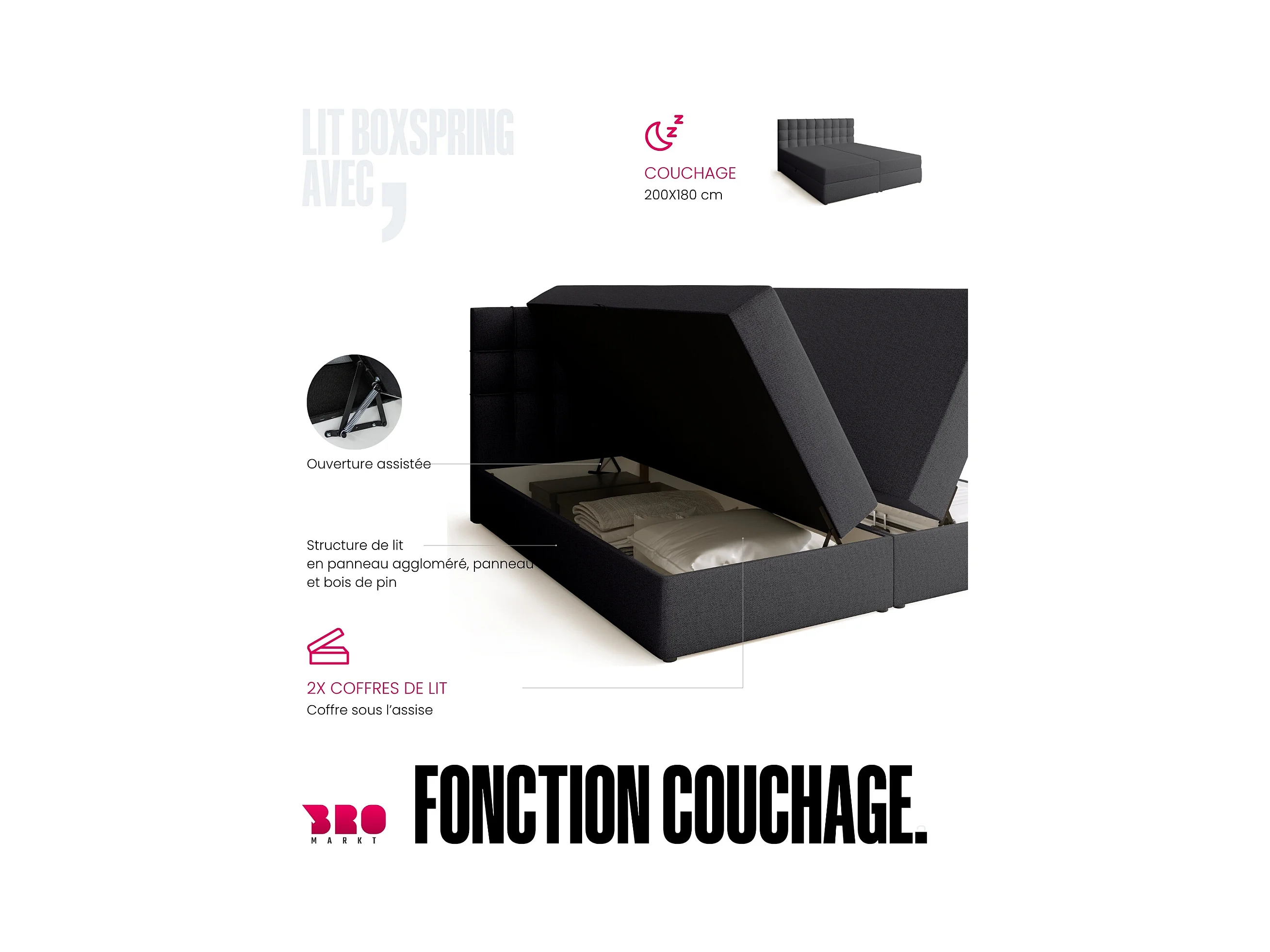Boxspringbed met hoofdeinde, matras en dekmatras - DAKOTA - 180x200 - donkergrijs