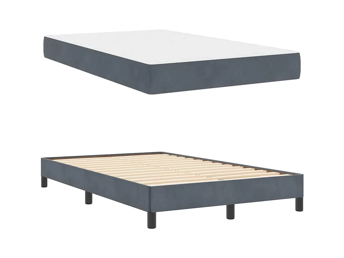 Donkergrijze lattenbodem en matras 120x190cm fluweel
