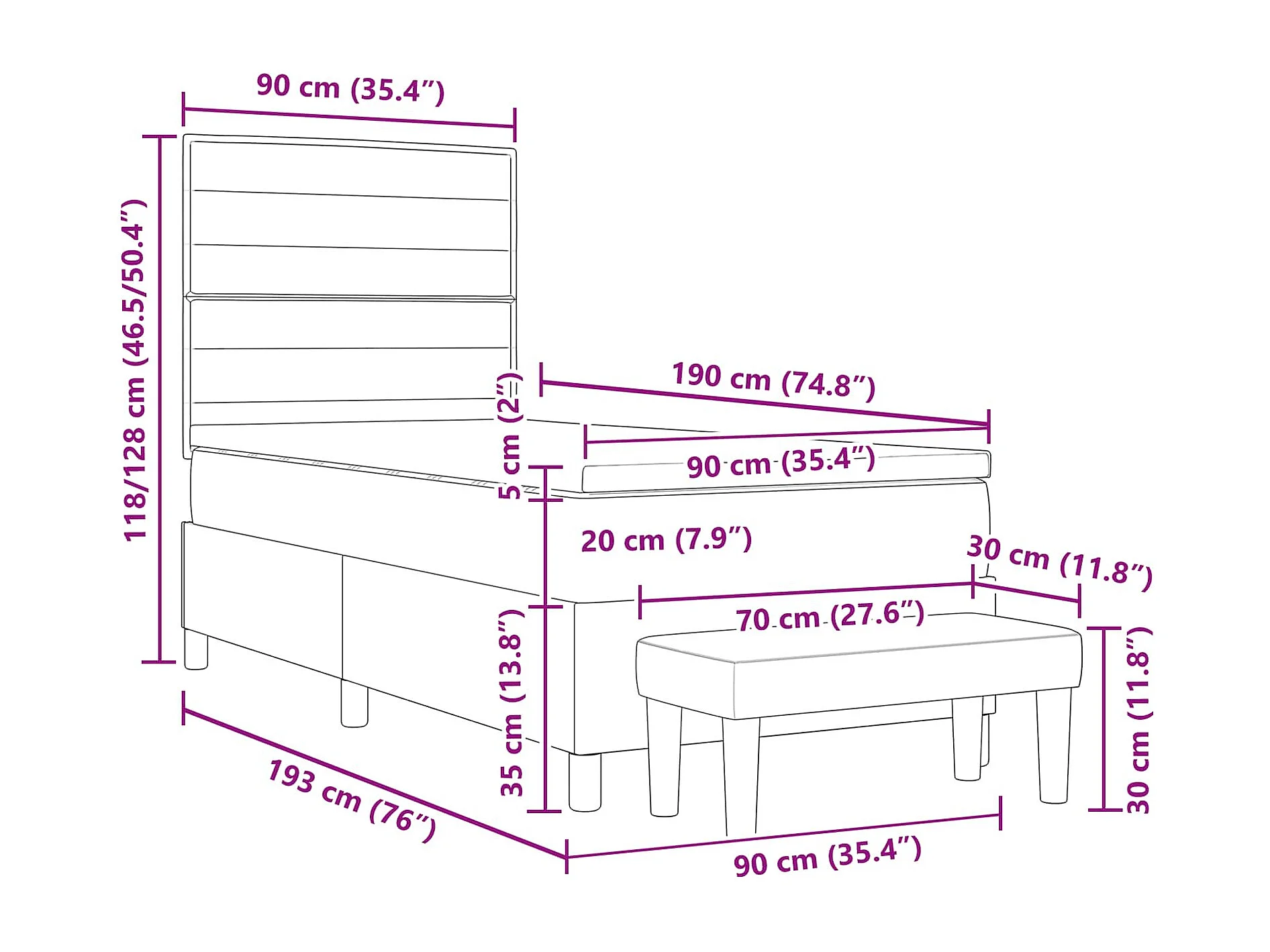 Boxspringbed met matras met hoofdeinde Blauw 90 x 190 cm Stof