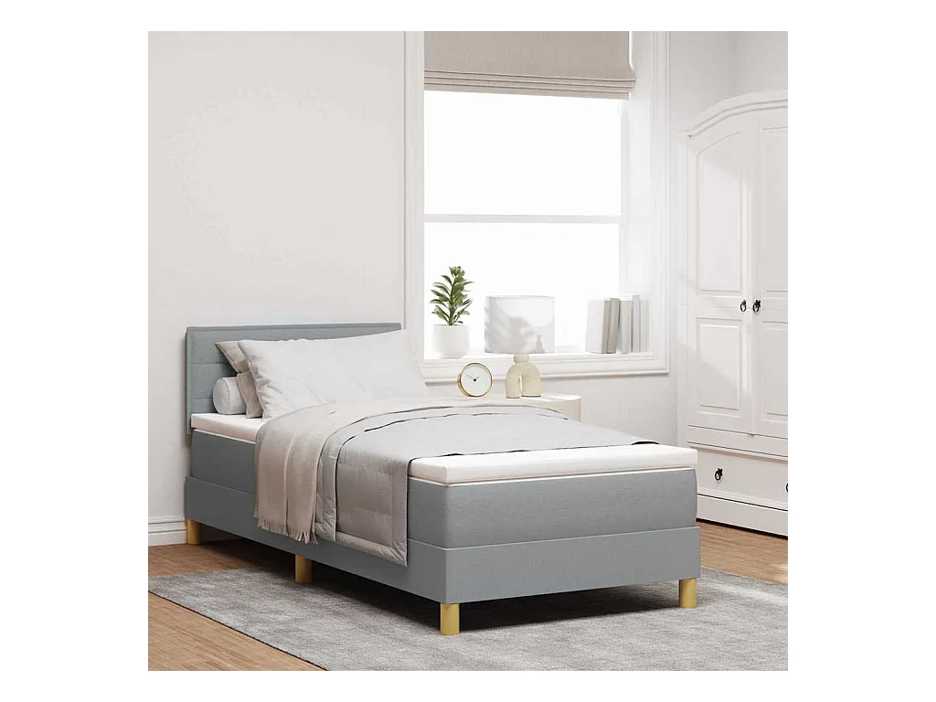 Boxspring bed Lichtgrijs en wit. 203 x 90 x 60 cm Katoenen stof