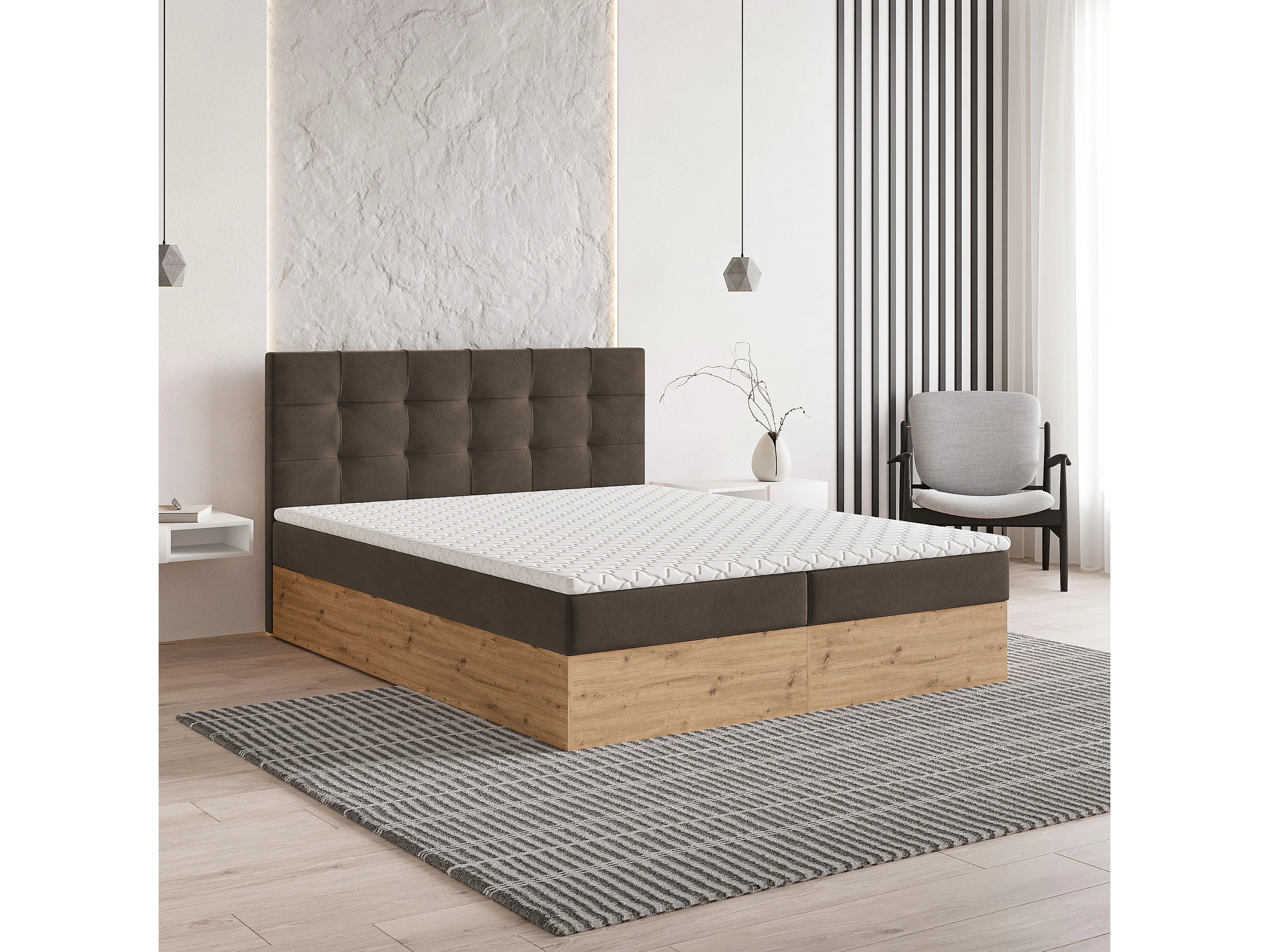 Boxspringbed MOLVEN 140x200 cm Set met hoofdbord, bedbodem en matras, Bruin