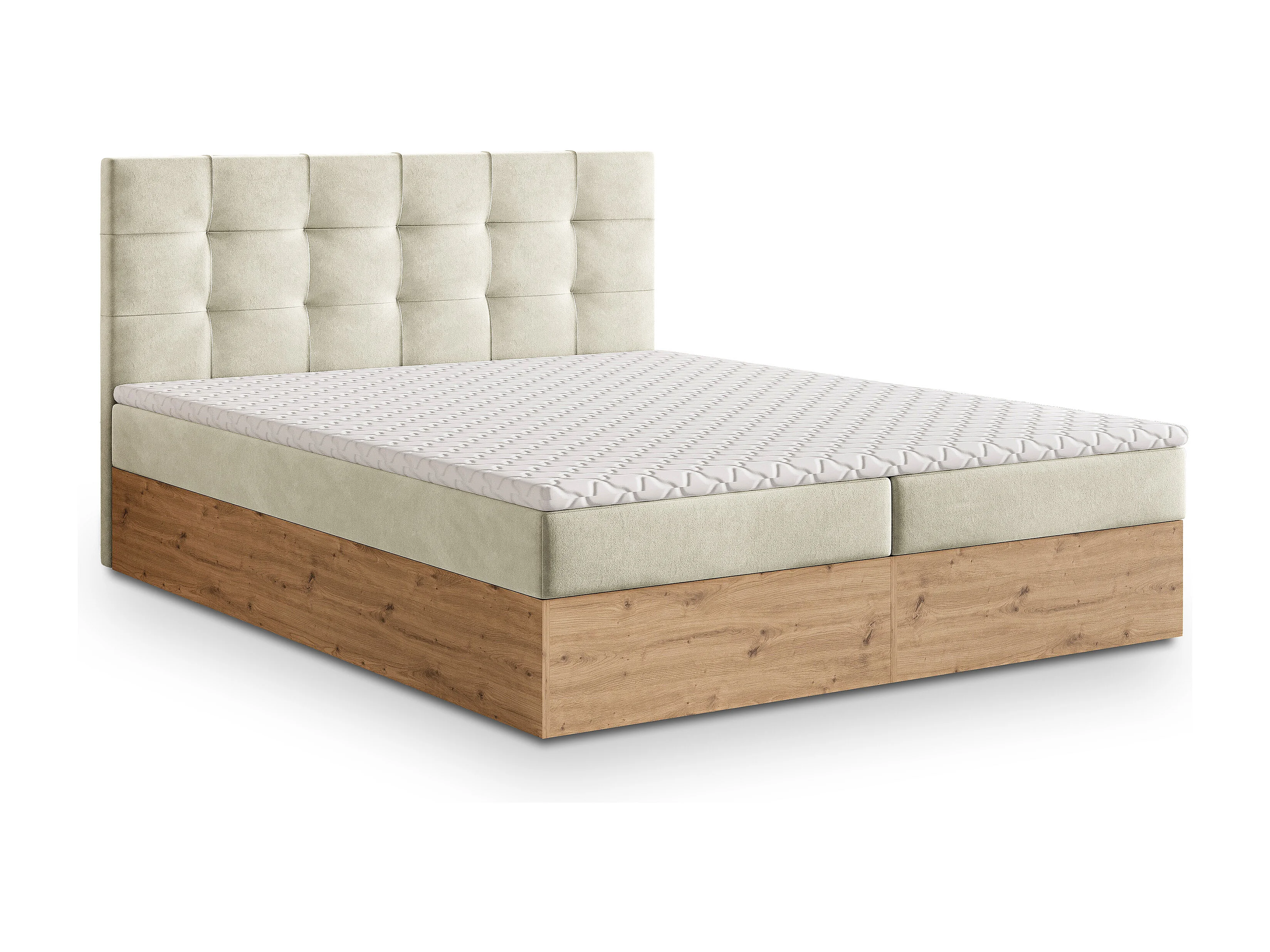 Boxspringbed MOLVEN 140x200 cm Set met hoofdbord, bedbodem en matras, Crème