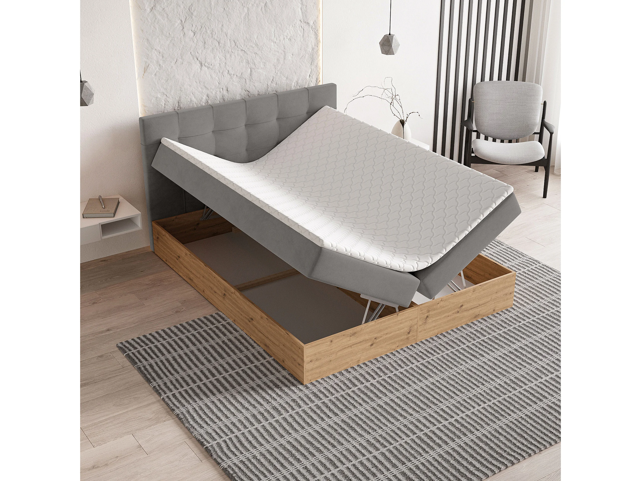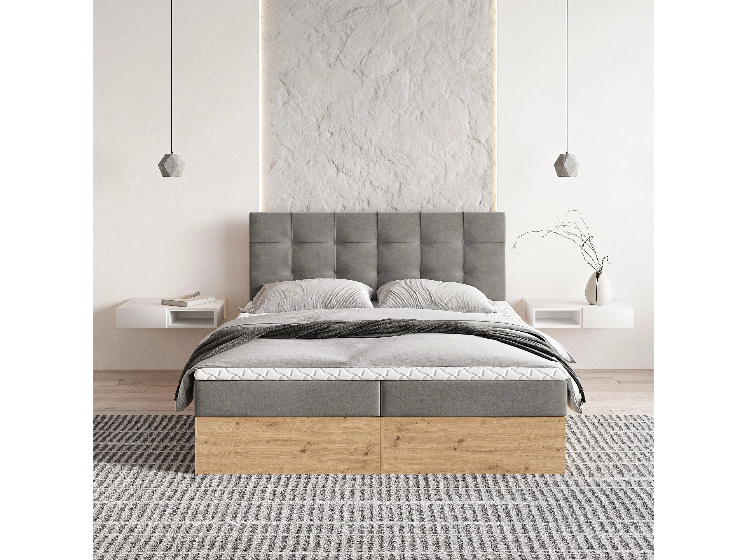 Boxspringbed MOLVEN 140x200 cm Set met hoofdbord, bedbodem en matras, Grijs