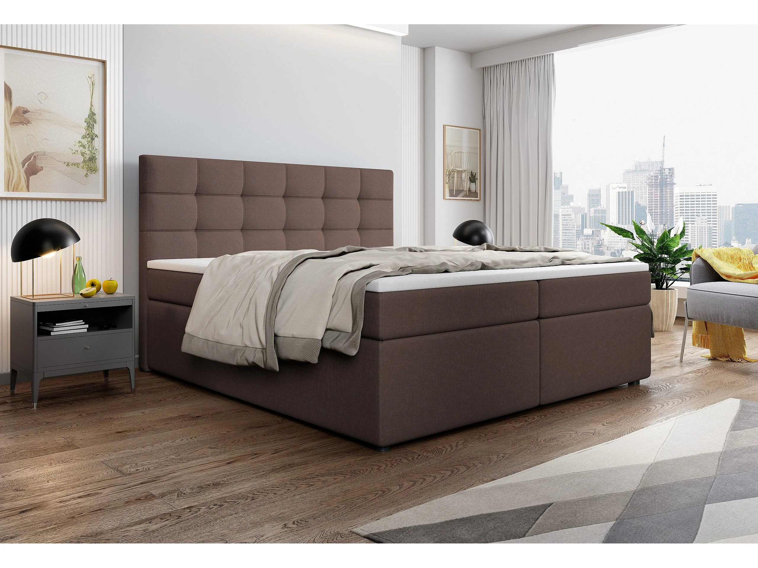 Boxspringbed PALMA 140x200 cm Set met hoofdbord, bedbodem en matras, Bruin